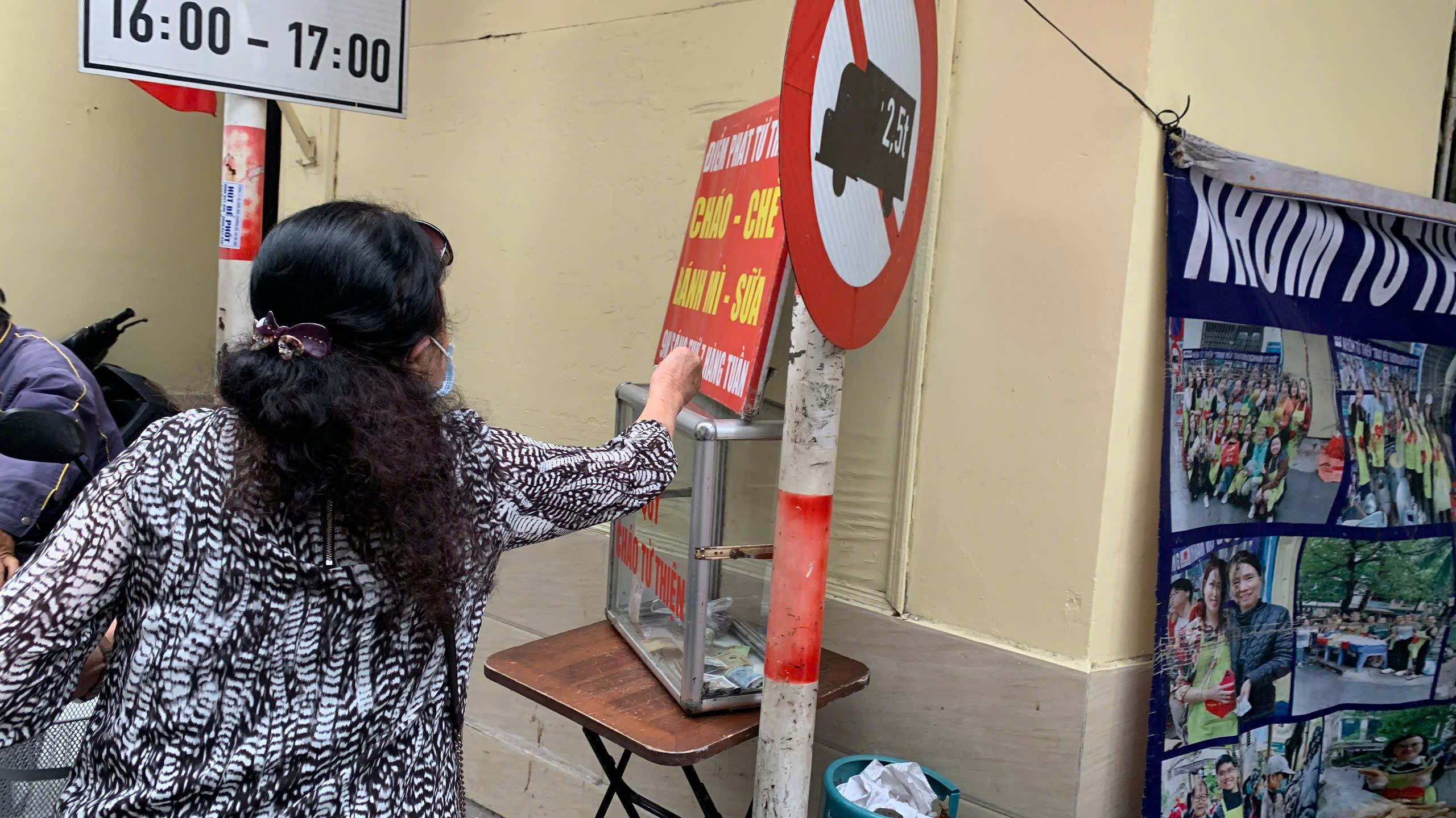 Chị Kim Dung (bên trái) nhận đóng góp của một nhà hảo tâm
