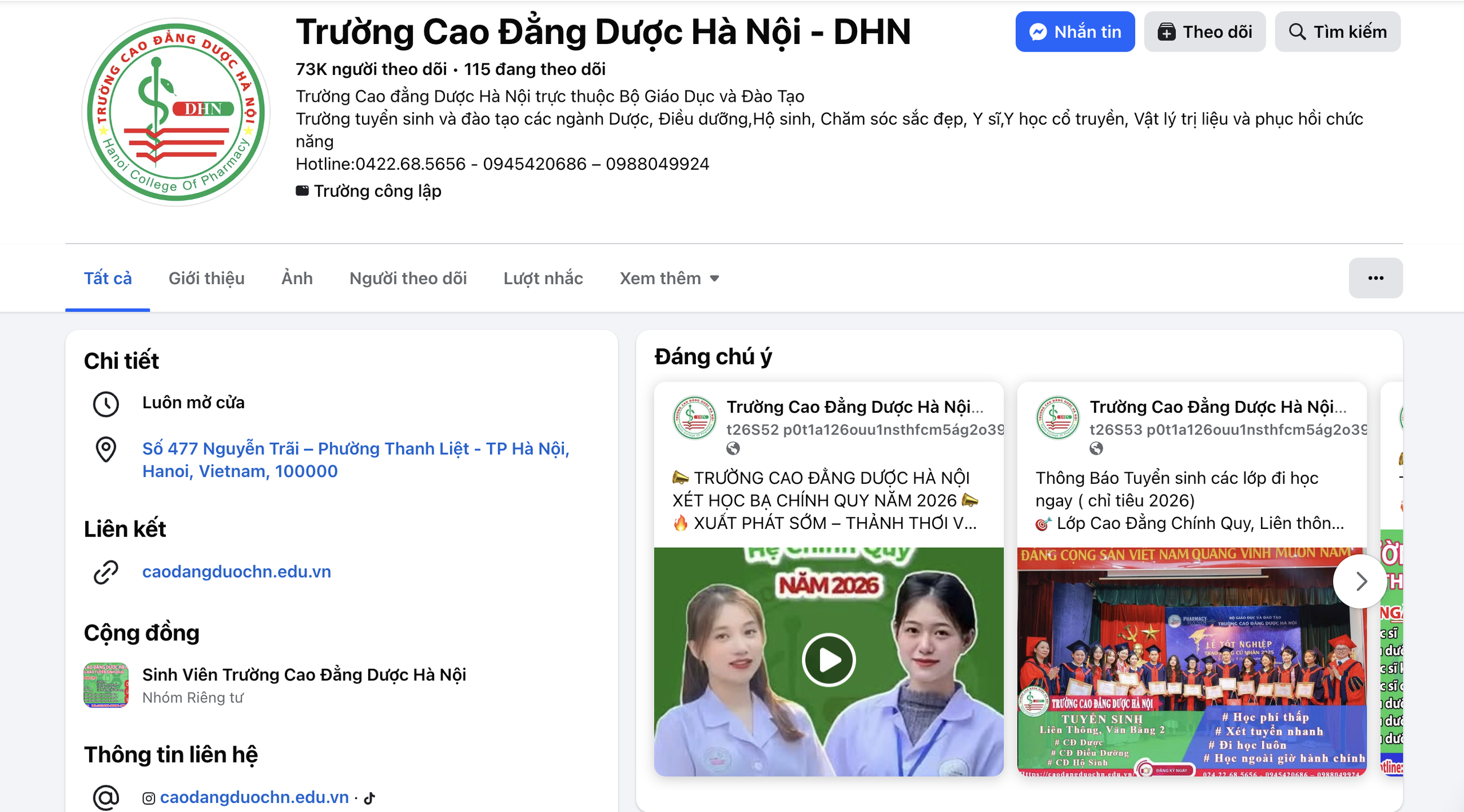 "Hai website, hai fanpage đều là của Trường Cao đẳng Dược Hà Nội, chỉ khác nhau về cơ sở đào tạo, không có chuyện trường giả hay trường thật", ông Thanh nói.