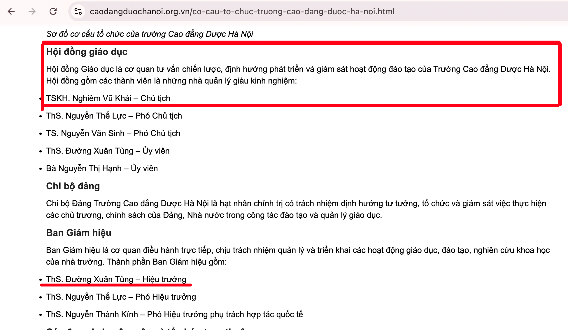Đồng thời, thông tin về Chủ tịch hội đồng giáo dục đều là tên ông Nghiêm Vũ Khải.