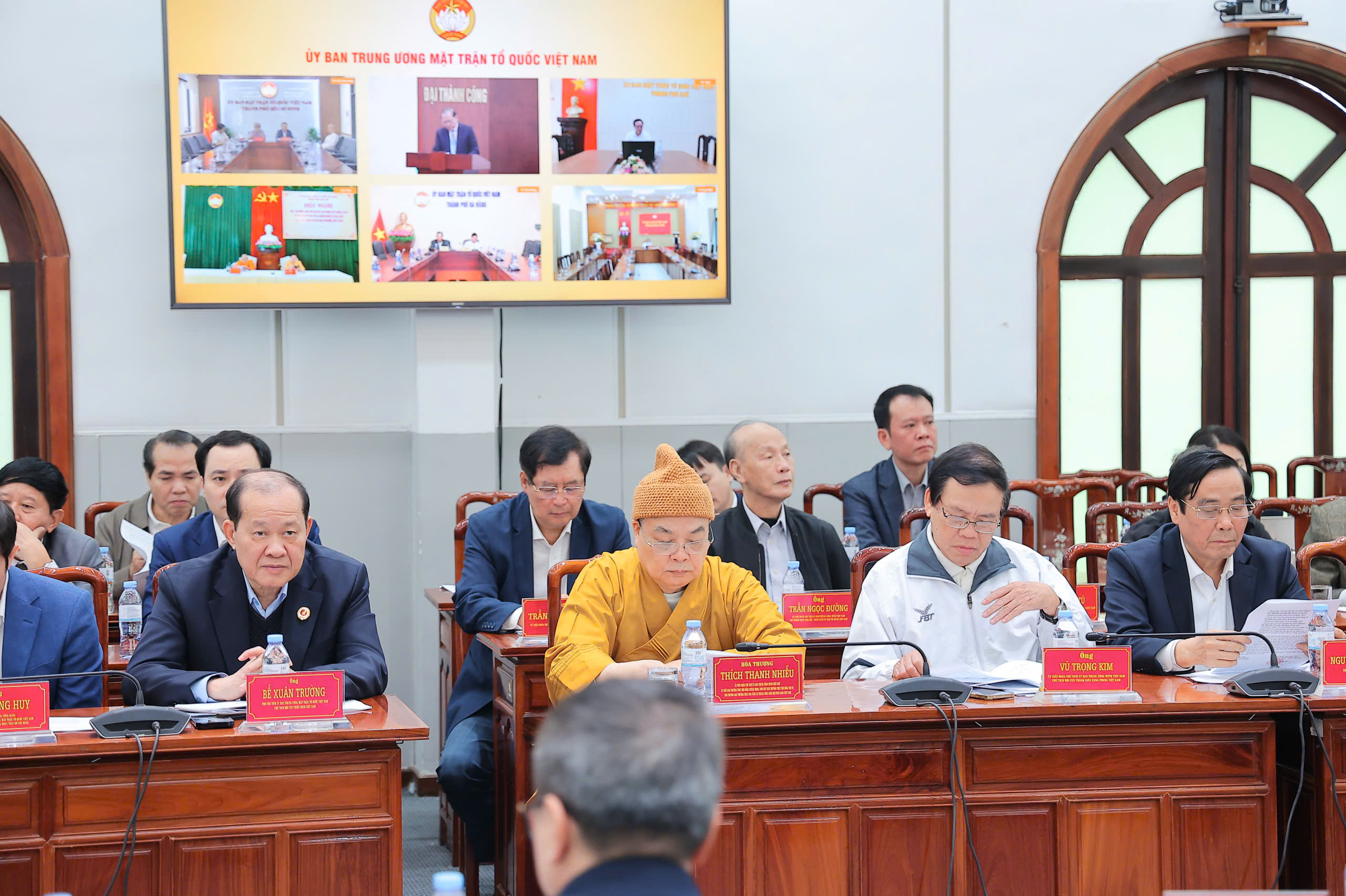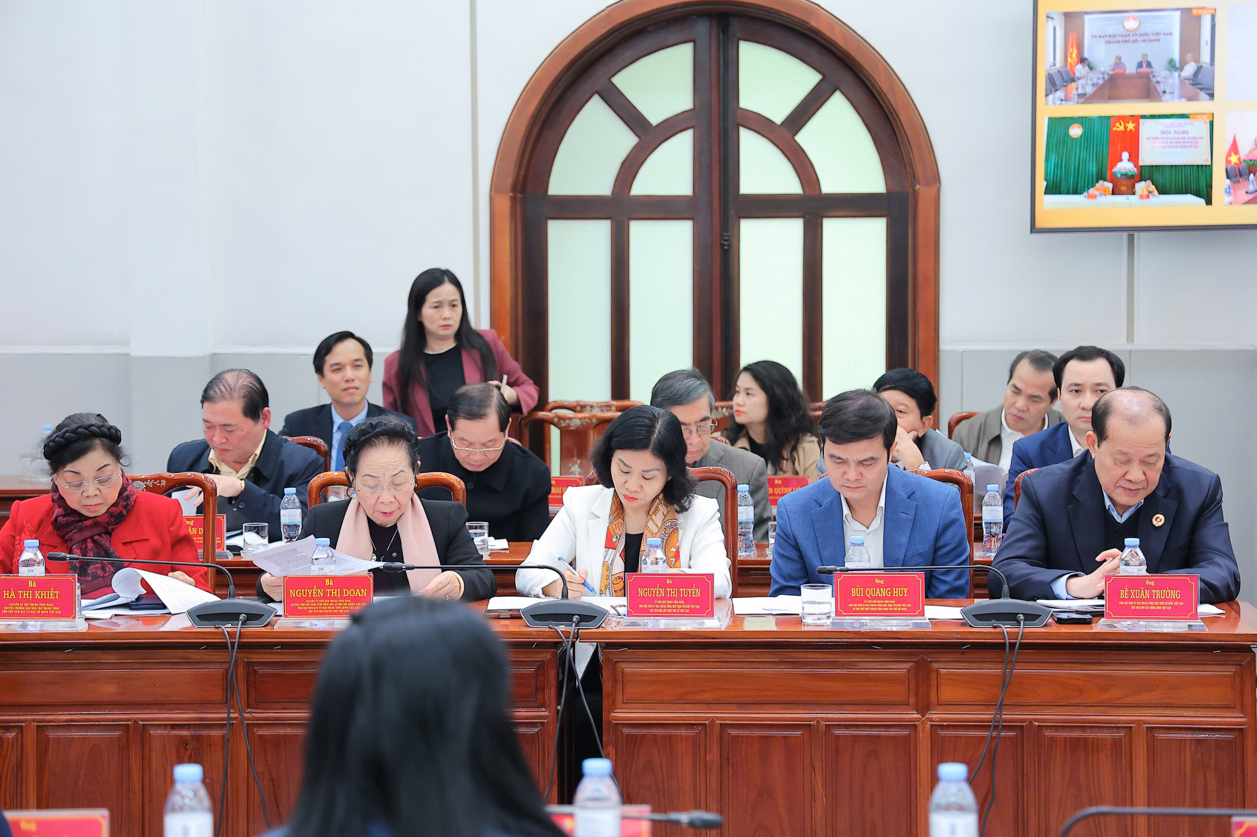 Đồng chí Bùi Thị Minh Hoài, Ủy viên Bộ Chính trị, Bí thư Trung ương Đảng, Bí thư Đảng ủy MTTQ, các đoàn thể Trung ương, Chủ tịch Ủy ban Trung ương MTTQ Việt Nam, Phó Chủ tịch Hội đồng bầu cử Quốc gia; đồng chí Hà Thị Nga, Ủy viên Trung ương Đảng, Phó Bí thư thường trực Đảng uỷ MTTQ, các Đoàn thể Trung ương, Phó Chủ tịch - Tổng Thư ký Ủy ban Trung ương MTTQ Việt Nam; đồng chí Hoàng Công Thủy, Phó Chủ tịch Ủy ban Trung ương MTTQ Việt Nam, chủ trì Hội nghị.