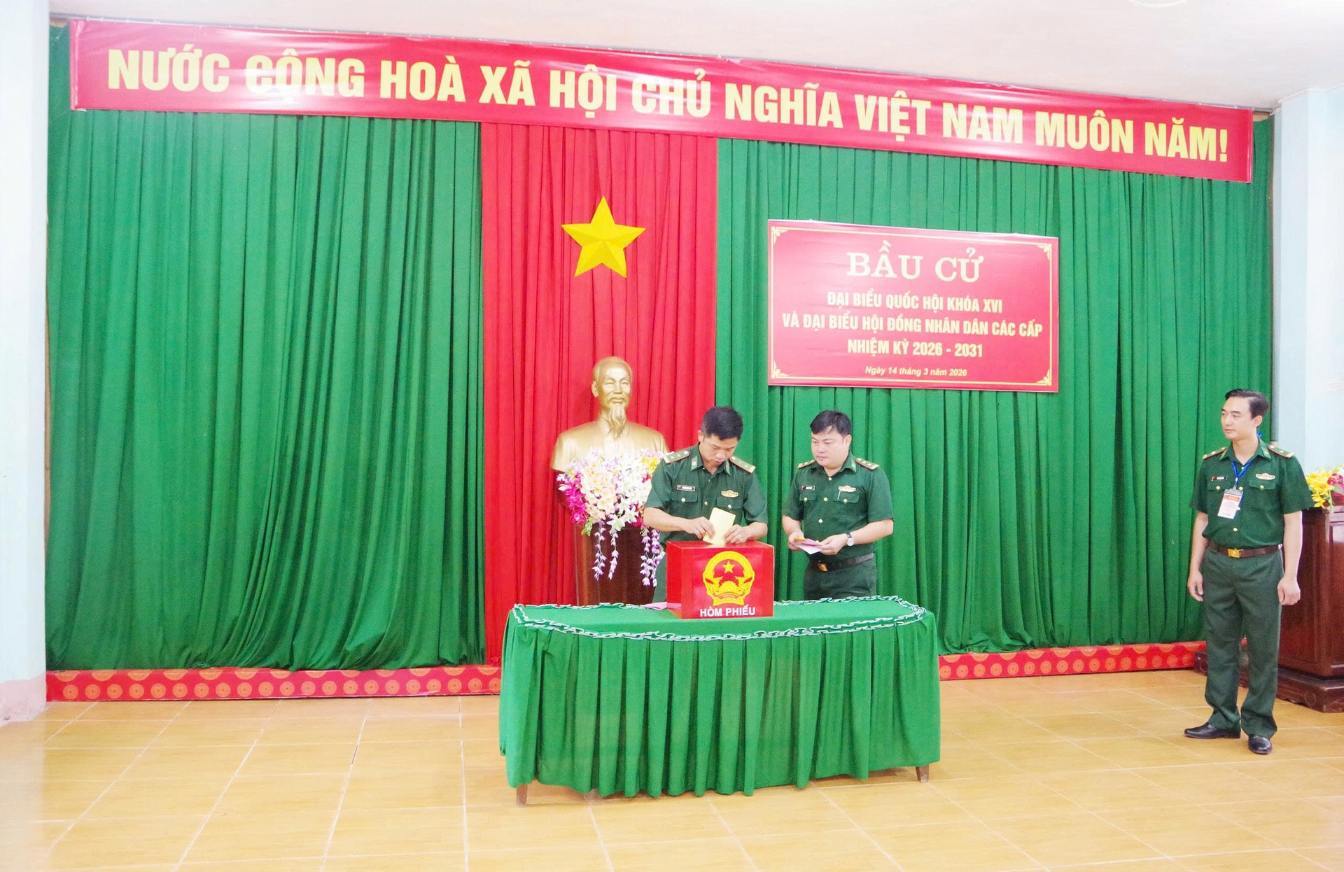 Tại các đồn biên phòng và đơn vị lực lượng vũ trang, cán bộ, chiến sĩ tham gia bỏ phiếu với tinh thần trách nhiệm cao. Việc bỏ phiếu được tiến hành nghiêm túc, dân chủ, bảo đảm đúng nguyên tắc, thể hiện rõ ý thức chính trị và niềm tin của cử tri đối với cuộc bầu cử.