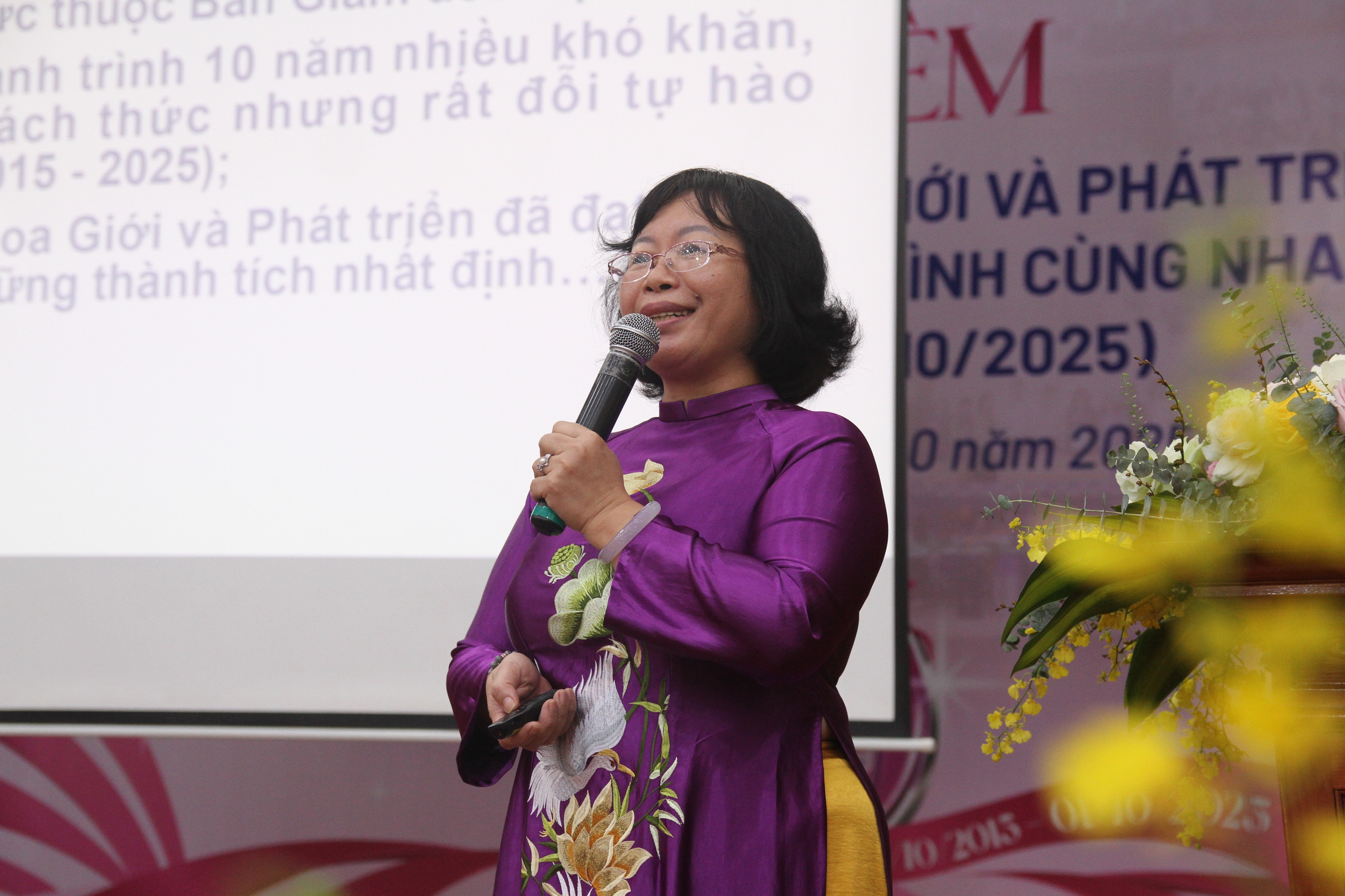 PGS.TS. Dương Kim Anh – Phó Giám đốc Học viện, Trưởng Khoa Giới và Phát triển chia sẻ tại Lễ kỷ niệm 10 năm ngày thành lập Khoa.