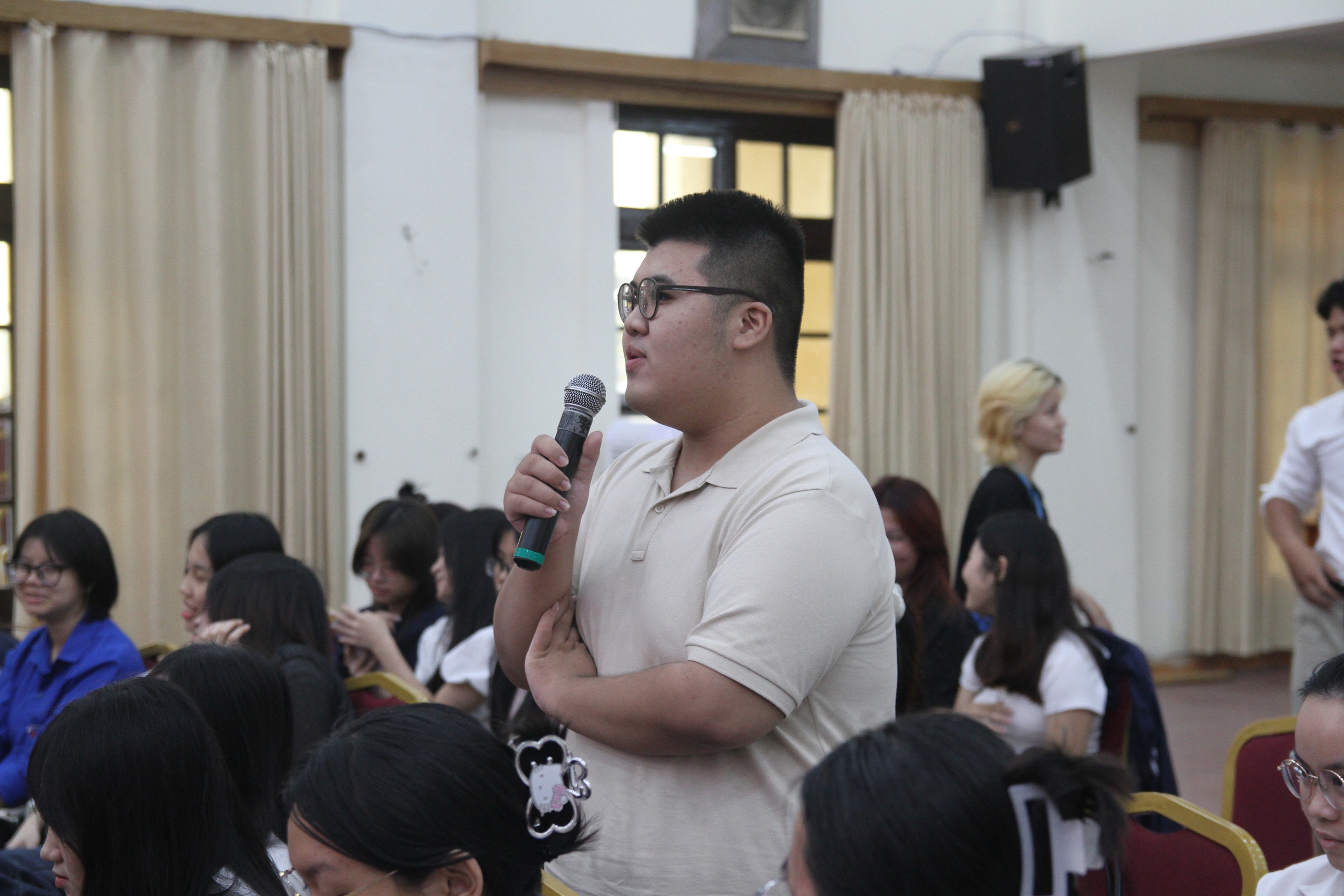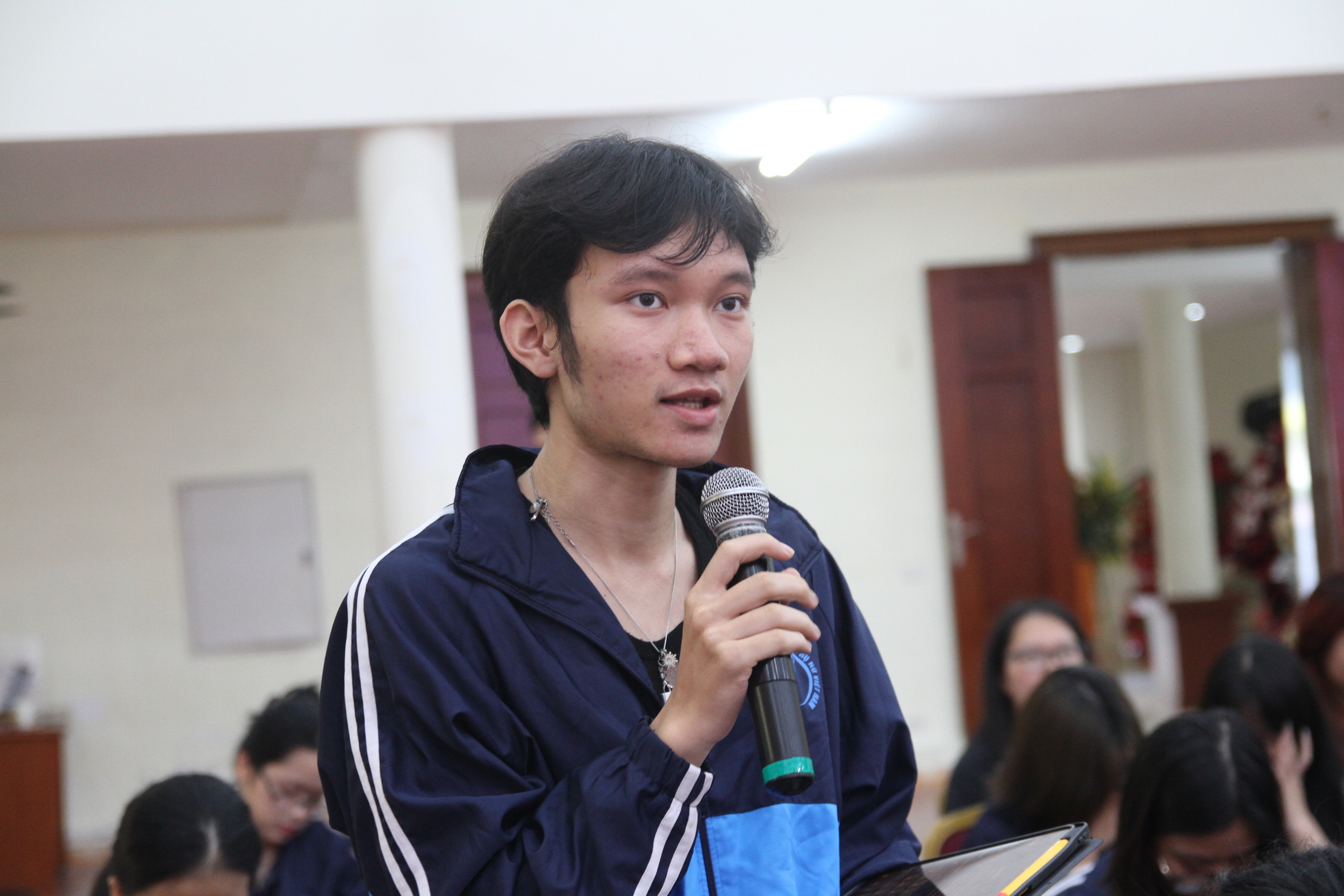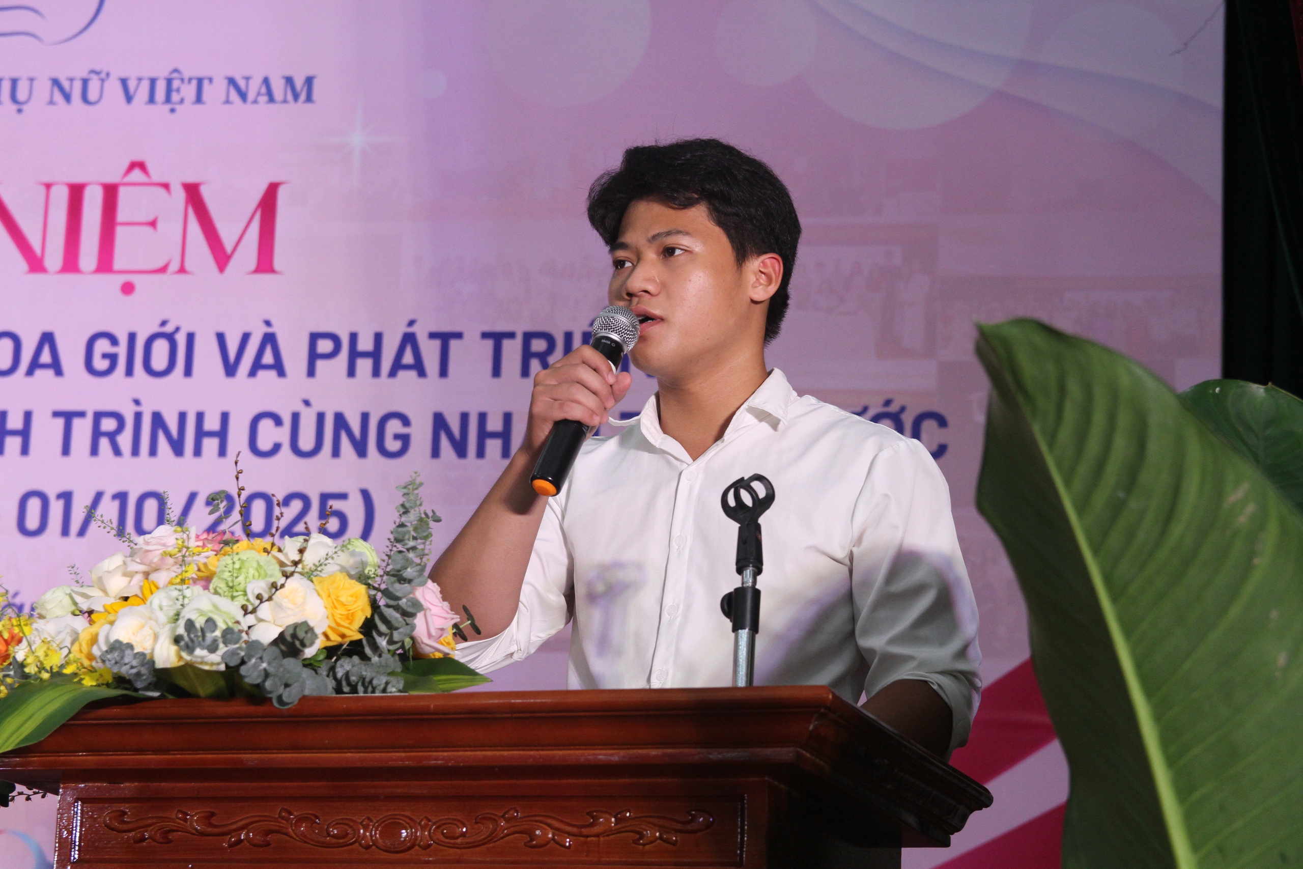 Sinh viên Tăng Văn Kỳ chia sẻ tại buổi Lễ kỷ niệm 10 năm ngày thành lập Khoa Giới và Phát triển.