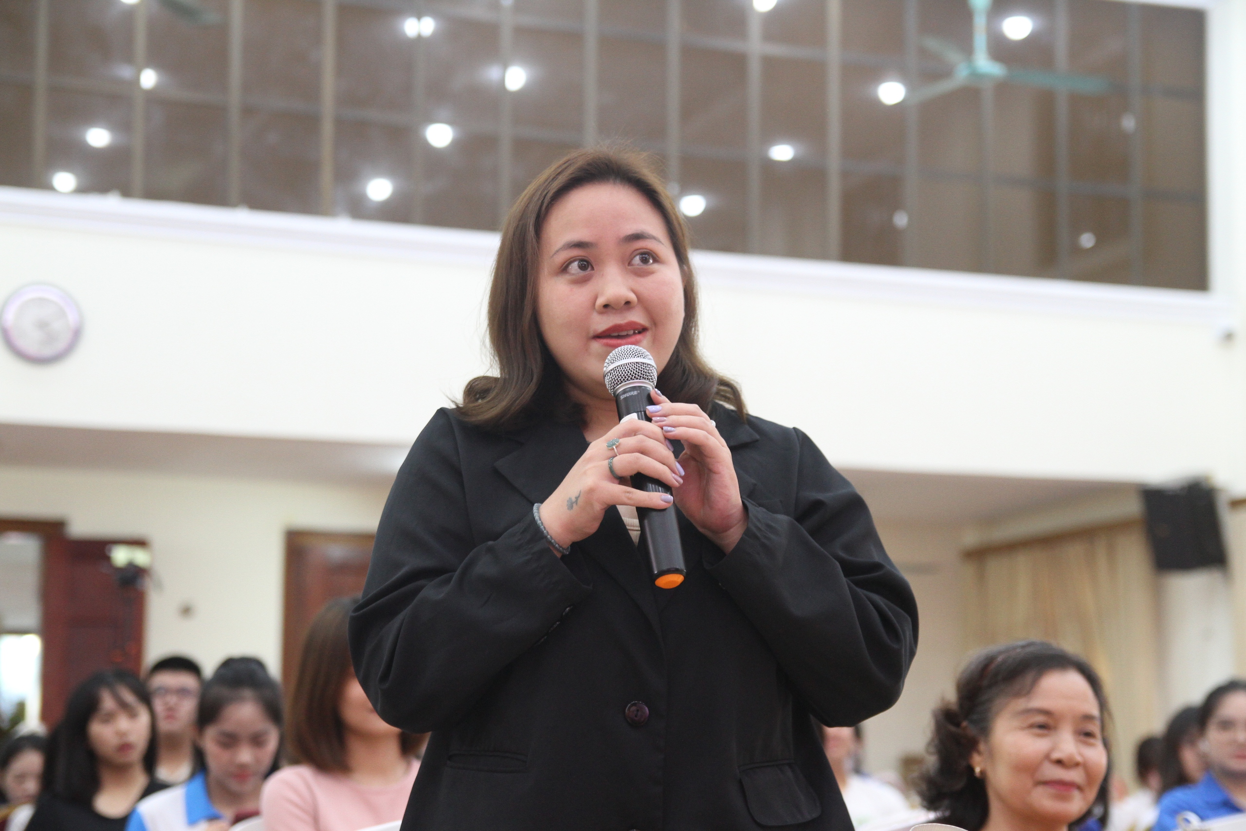Cựu sinh viên Bế Thị Ngọc Hà chia sẻ những kỷ niệm khi được học tập tại Học viện Phụ nữ Việt Nam.
