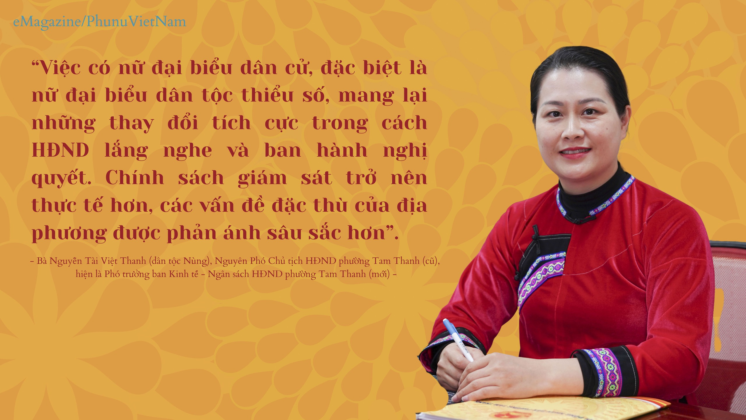 Bà Thanh chia sẻ: "Việc có nữ đại biểu dân cử, đặc biệt là nữ đại biểu dân tộc thiểu số, mang lại những thay đổi tích cực trong cách HĐND lắng nghe và ban hành nghị quyết. Chính sách giám sát trở nên thực tế hơn, các vấn đề đặc thù của địa phương được phản ánh sâu sắc hơn". Sự hiện diện của bà là minh chứng sống động cho thấy phụ nữ dân tộc thiểu số hoàn toàn có thể tham gia quyết định những vấn đề quan trọng của địa phương.