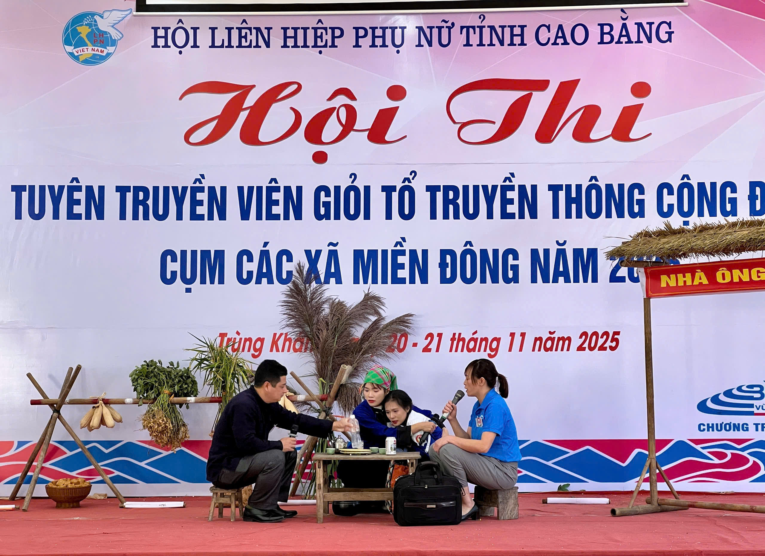 Trong hai ngày, 20 và 21/11, Hội LHPN tỉnh Cao Bằng đã tổ chức Hội thi "Tuyên truyền viên giỏi Tổ truyền thông cộng đồng" năm 2025, cụm các xã miền Đông, bao gồm: Phục Hoà, Bế Văn Đàn, Độc Lập, Quảng Uyên, Hạnh Phúc, Tổng Cọt, Quang Hán, Trà Lĩnh, Quang Trung, Đoài Dương, Trùng Khánh, Đàm Thuỷ, Đình Phong, Hạ Lang, Lý Quốc, Vinh Quý, Quang Long, Đức Long.