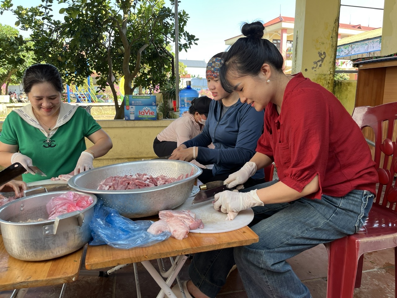 Cũng theo ông, chính quyền địa phương đã huy động toàn bộ lực lượng, từ dân quân, Đoàn thanh niên, Hội LHPN đến giáo viên mầm non, cùng phối hợp nấu cơm, cấp nước uống, đảm bảo nơi ăn ở cho người dân. "Đặc biệt là đội ngũ các cô giáo mầm non, các cô trực đêm, lo từng suất cơm, chỗ ngủ cho bà con. Có thể nói, đây là lực lượng nòng cốt trong mọi đợt thiên tai ở địa phương", ông Tuấn chia sẻ.