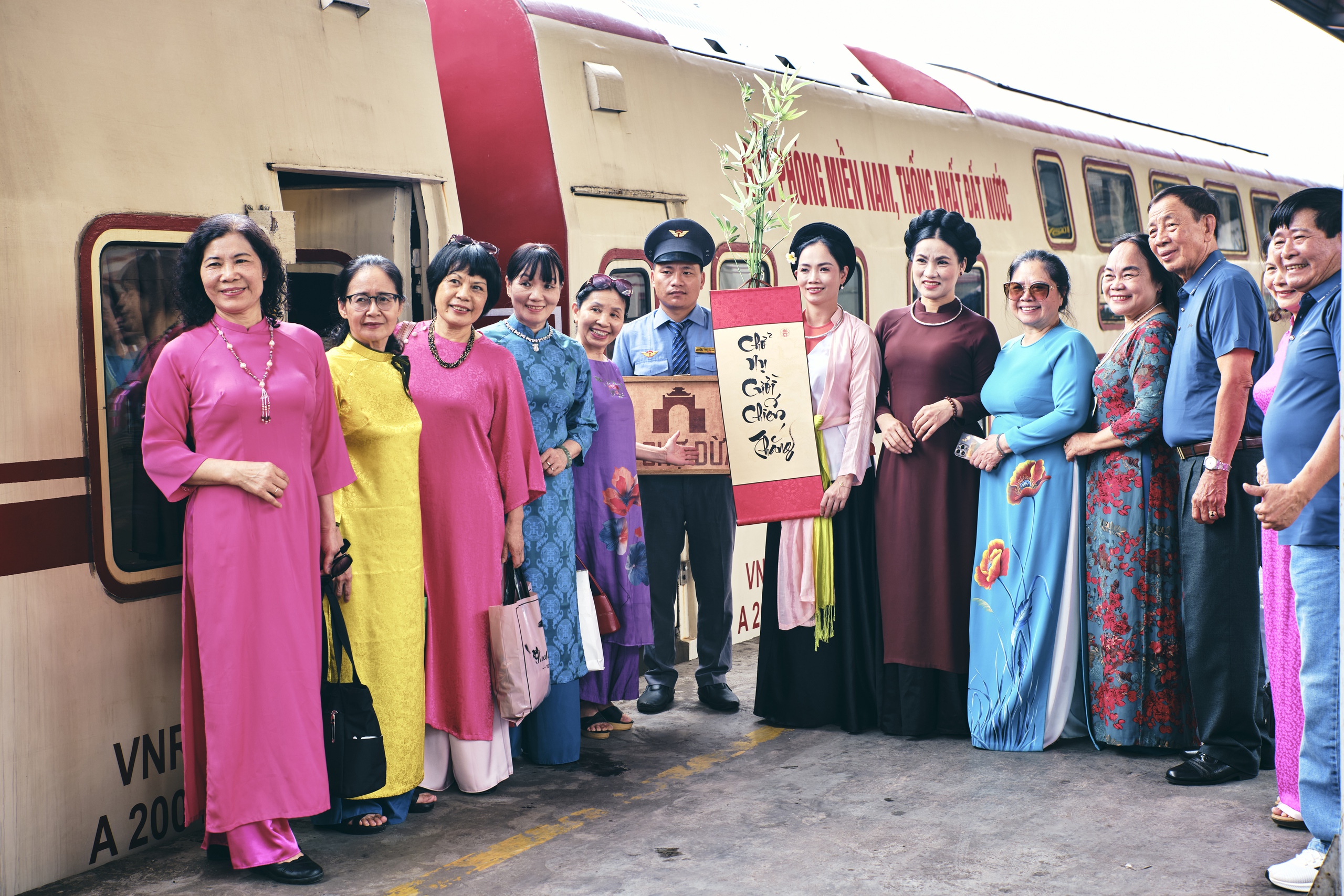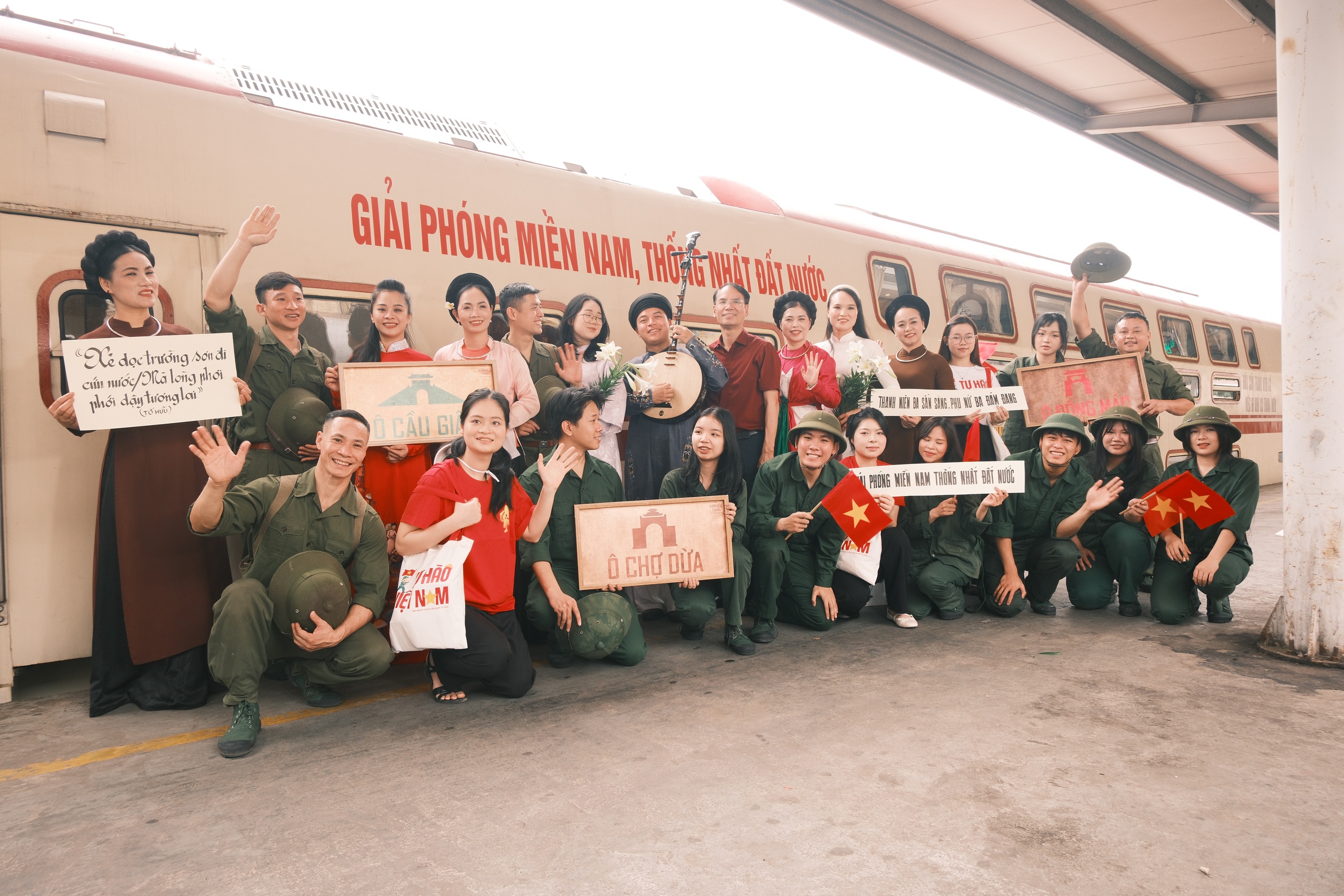 Khác với những chuyến tàu thông thường, hành trình này dẫn dắt hành khách trở về với những dấu mốc thiêng liêng của dân tộc. Con tàu khoác lên mình diện mạo mới, tái hiện các khẩu hiệu và hình ảnh giàu tính biểu tượng của những thời kỳ kháng chiến, như một lời nhắc nhở tự hào về hành trình giành lại độc lập, tự do.