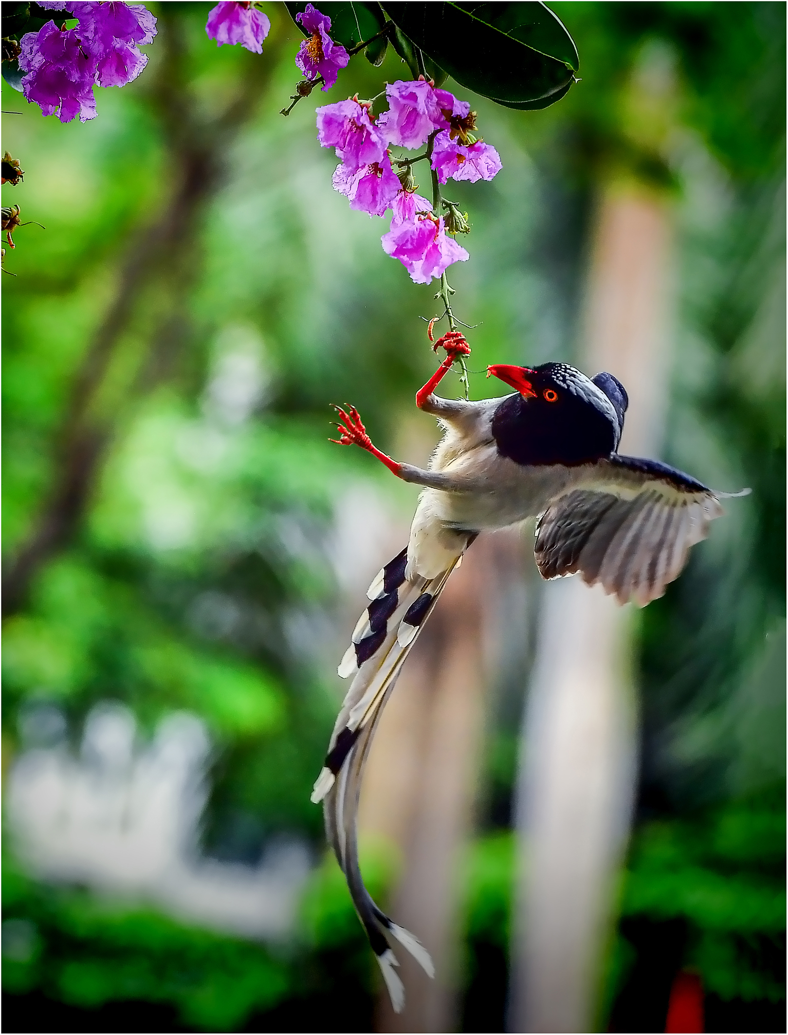 Nhiều tác phẩm nhiếp ảnh ghi nhận sự xuất hiện của loài chim Giẻ cùi mỏ đỏ. (Ảnh: Thanh Hà)