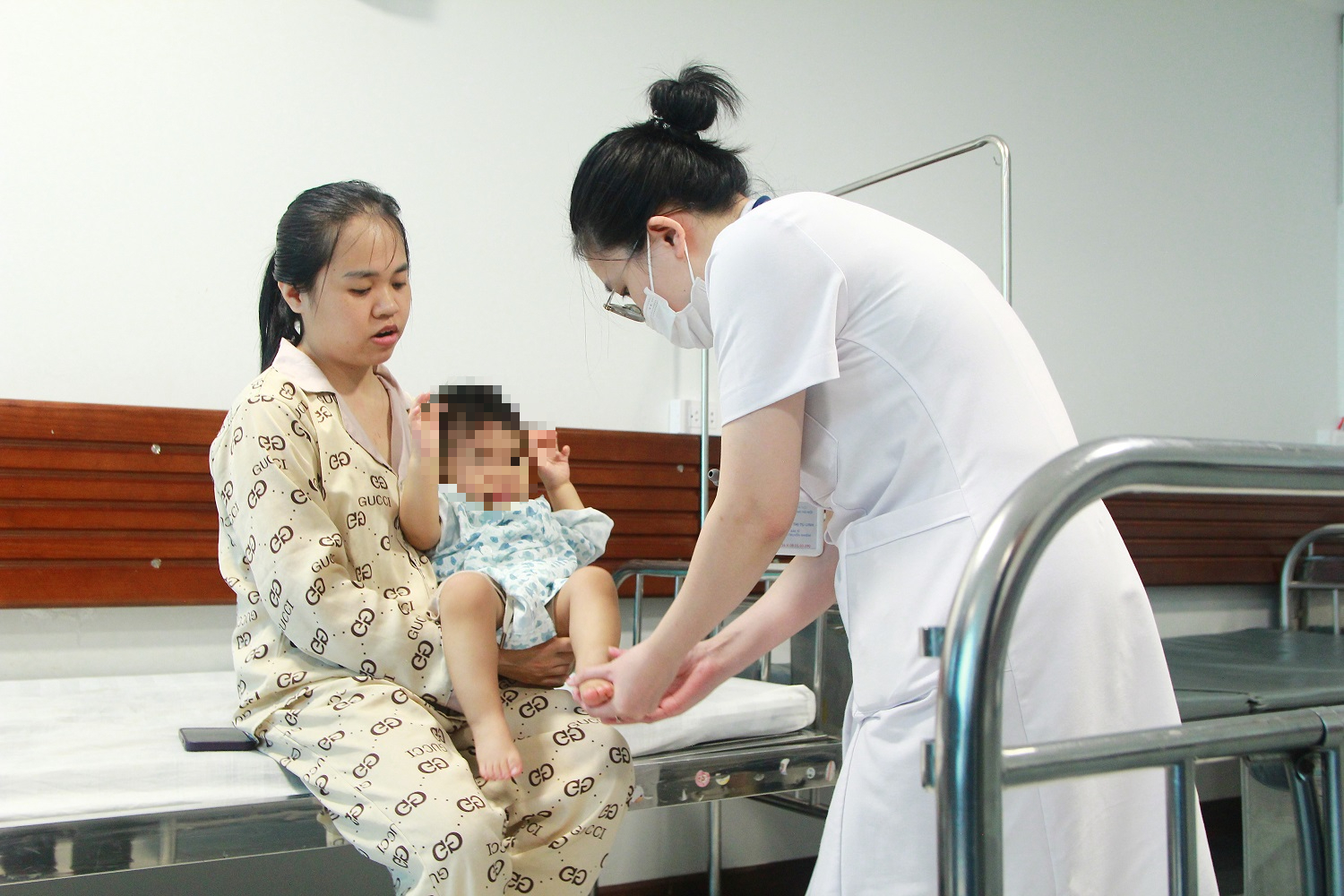 Bác sĩ thăm khám cho bệnh nhi bị tay chân miệng