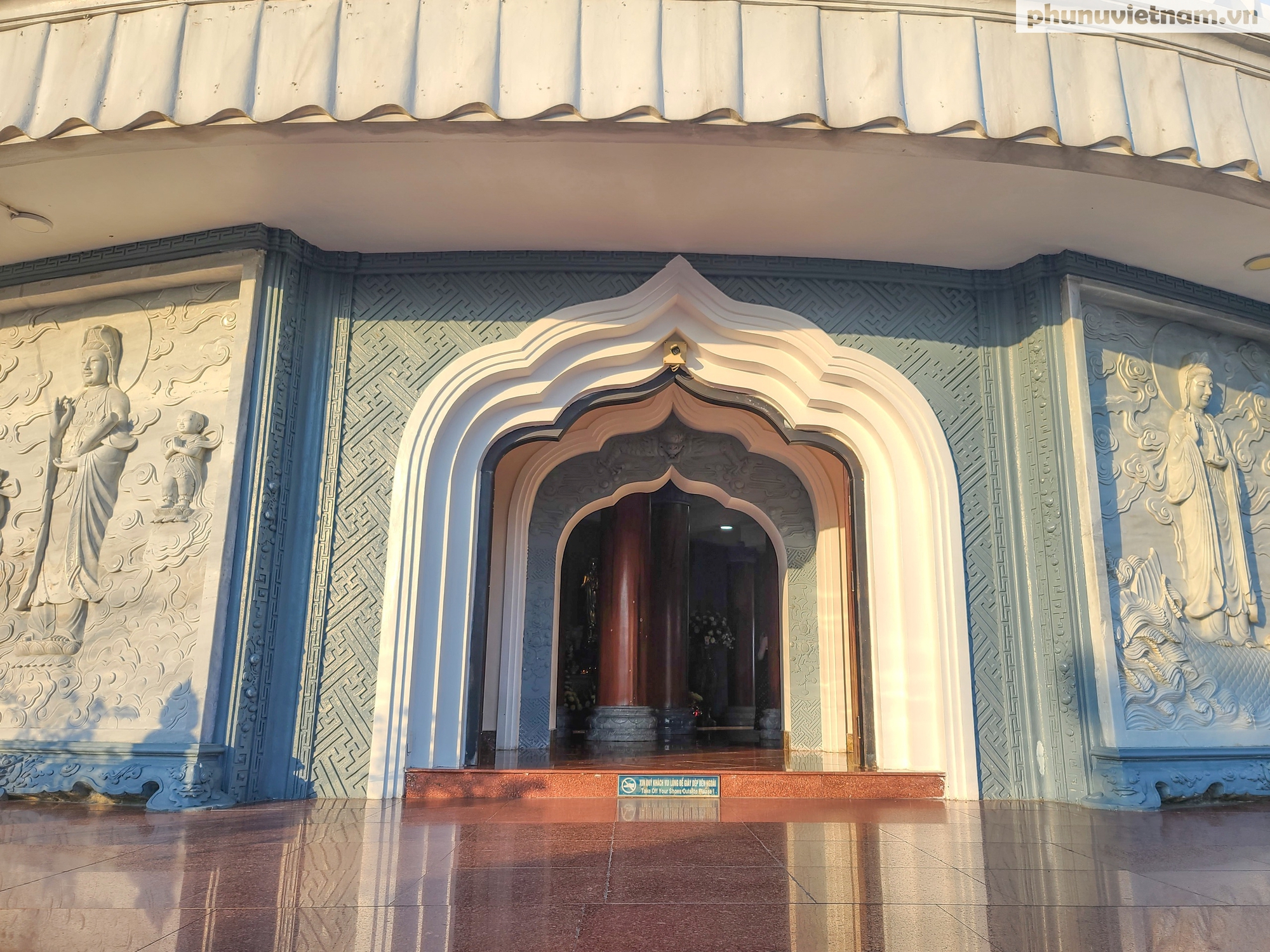 Bước qua cổng tam quan uy nghi, du khách lạc vào không gian tâm linh hài hòa với thiên nhiên, giữa màu xanh cây lá và tiếng sóng biển rì rào