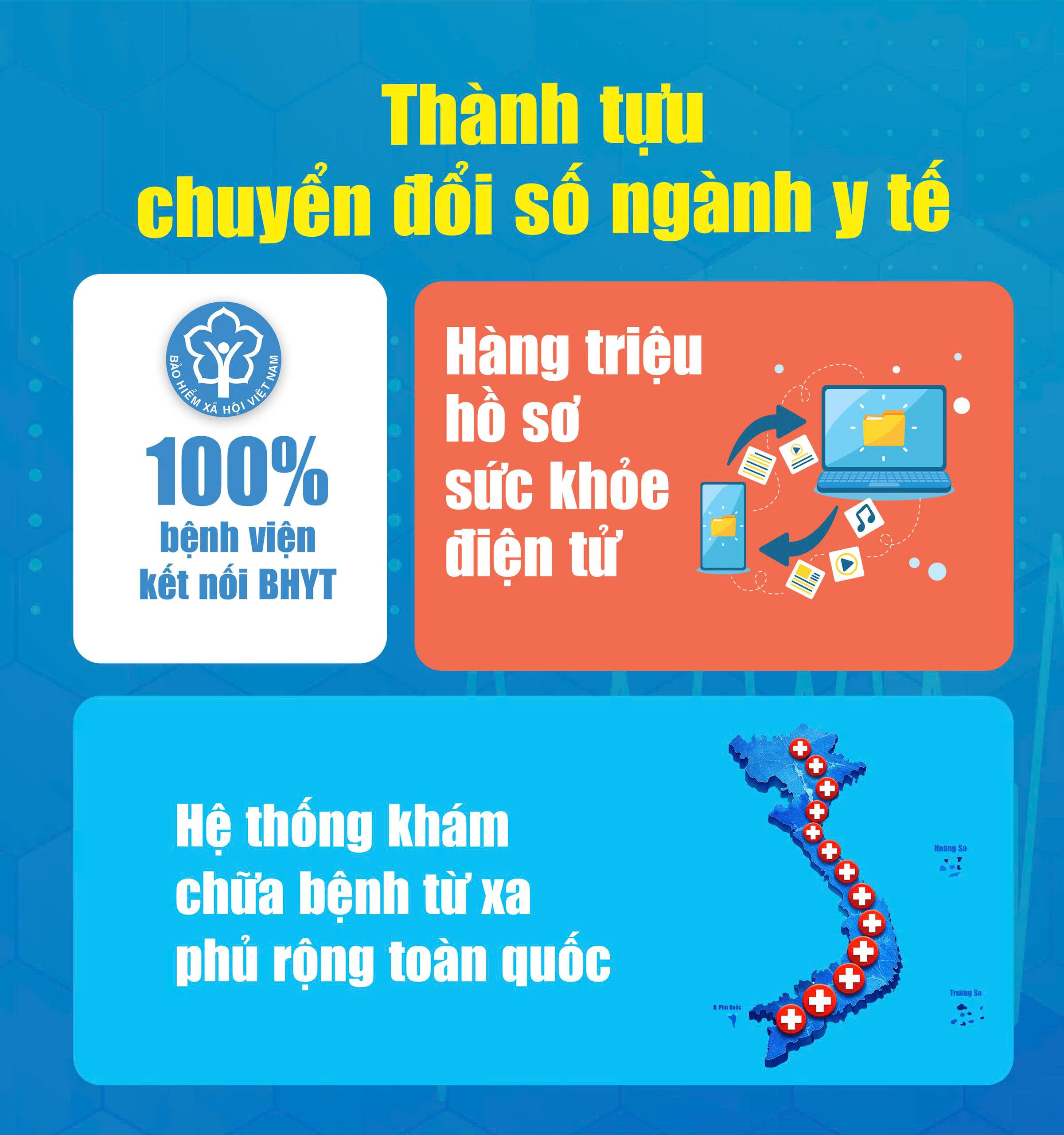 Theo Bộ trưởng Bộ Y tế Đào Hồng Lan ngành y tế đang đẩy mạnh chuyển đổi số với nhiều nền tảng quan trọng nhằm nâng cao hiệu quả quản lý, chất lượng khám chữa bệnh và khả năng tiếp cận dịch vụ y tế của người dân.