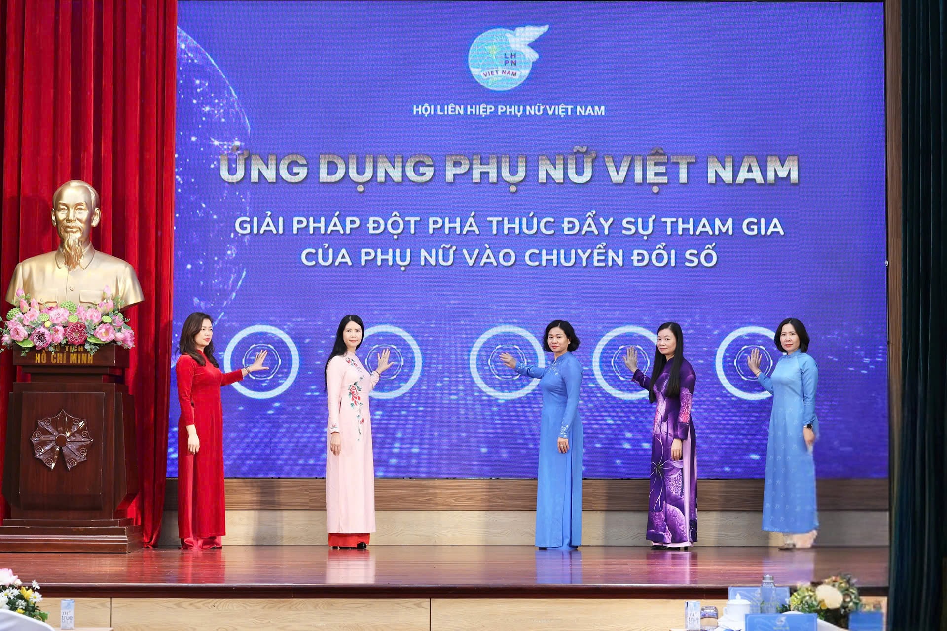 Lãnh đạo Hội LHPN Việt Nam và các đại biểu nhấn nút ra mắt ứng dụng “Phụ nữ Việt Nam”