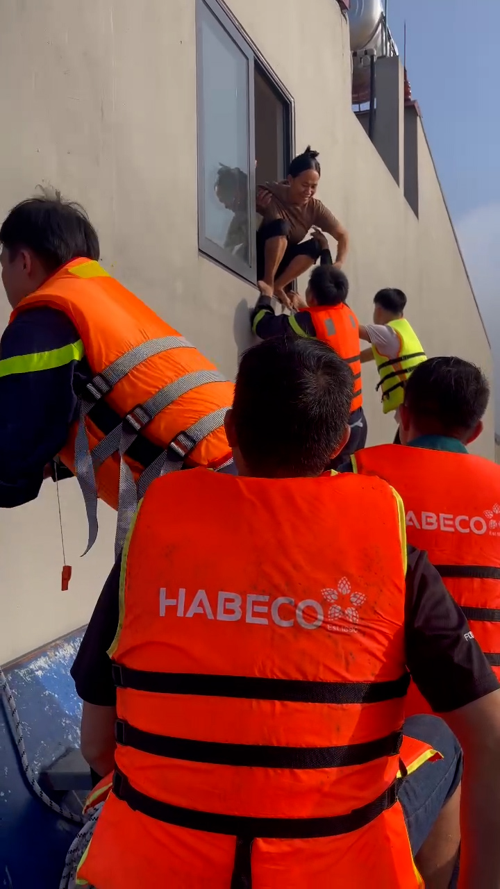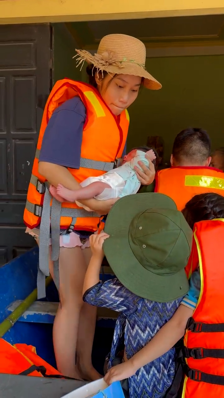 Trưa 9/10, tại xã Hoàng Vân (tỉnh Bắc Ninh), các cán bộ, chiến sĩ Công an đã kịp thời hỗ trợ đưa cháu bé sơ sinh và nhiều người già từ tầng 2 của những ngôi nhà bị ngập đến nơi an toàn.