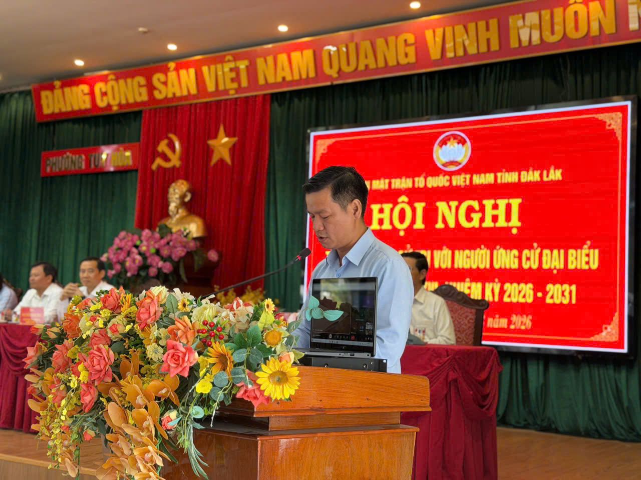 Ngày 2/3, Ủy ban Mặt trận Tổ quốc Việt Nam tỉnh Đắk Lắk tổ chức hội nghị tiếp xúc cử tri với những người ứng cử đại biểu Quốc hội khóa XVI tại đơn vị bầu cử số 1 để vận động bầu cử.