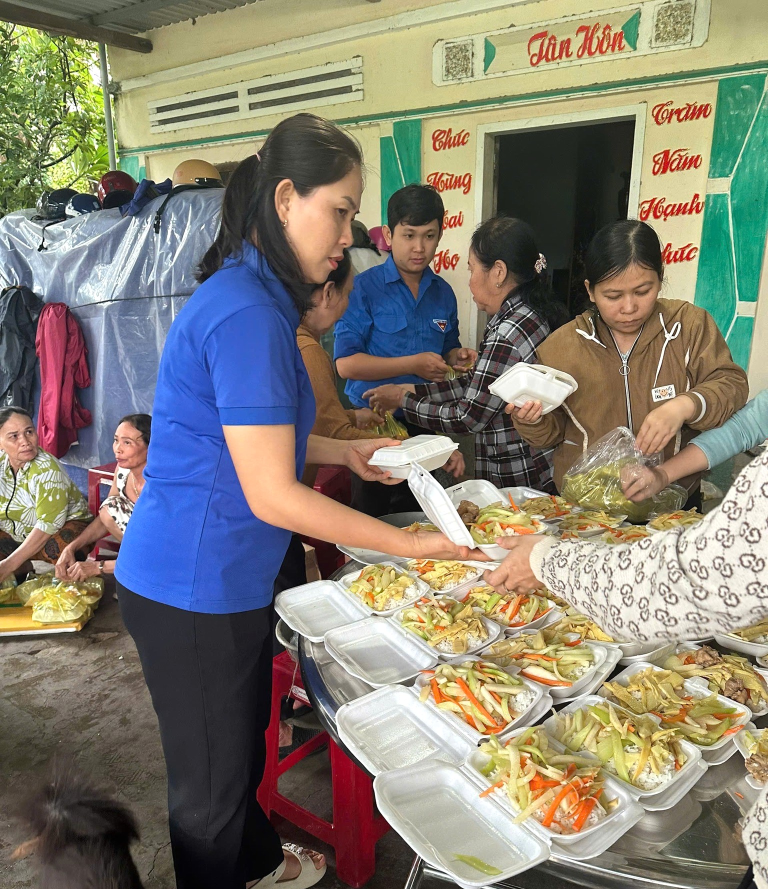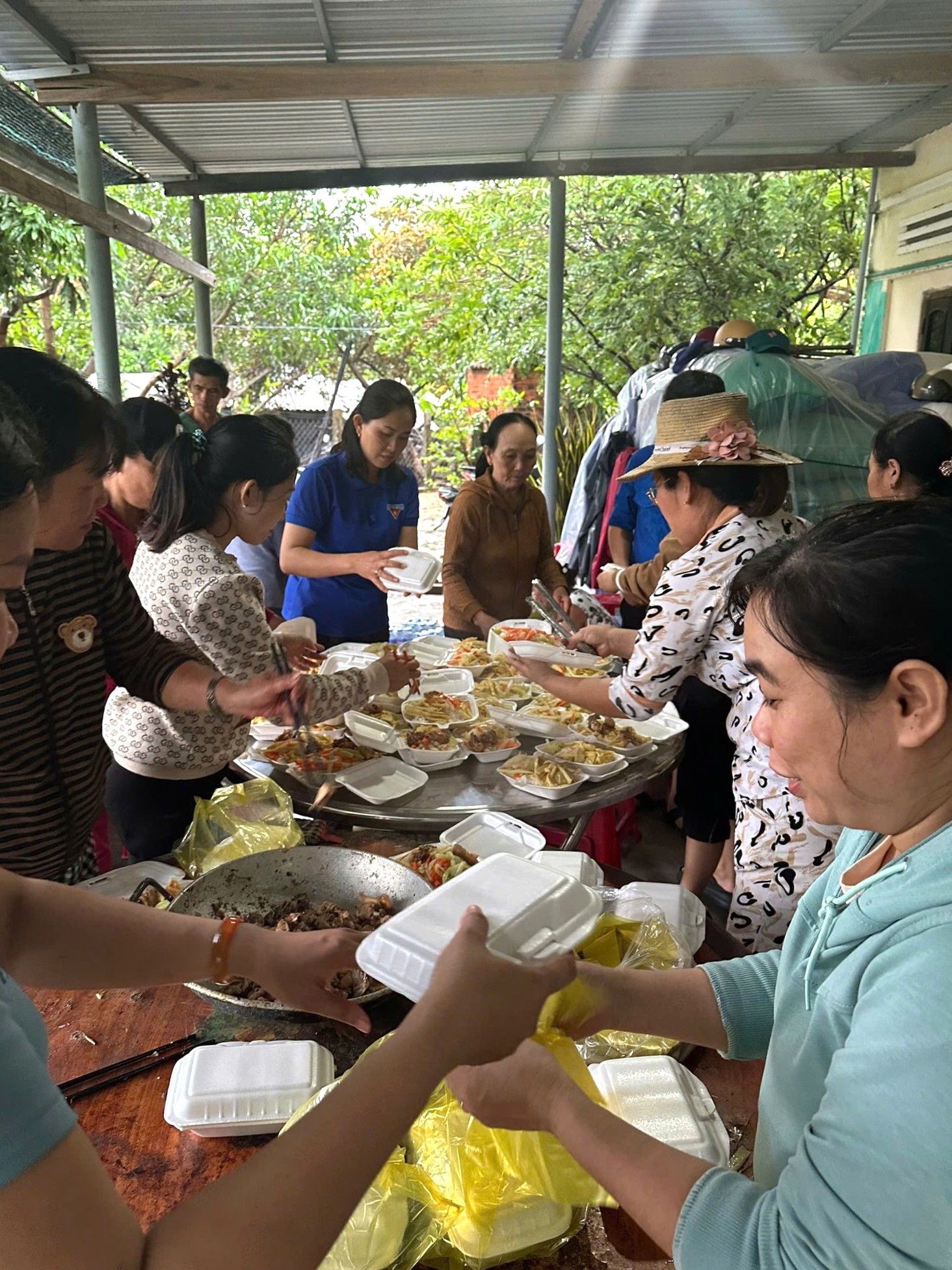 Ứng phó khẩn cấp với tình hình mưa lũ, Hội LHPN xã Phú Hòa 1 đã nhanh chóng tổ chức Bếp ăn nghĩa tình, chuẩn bị các suất cơm gửi đến bà con khu vực bị ngập lụt.