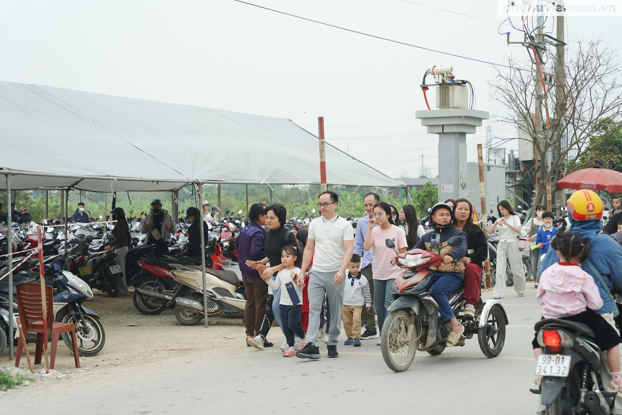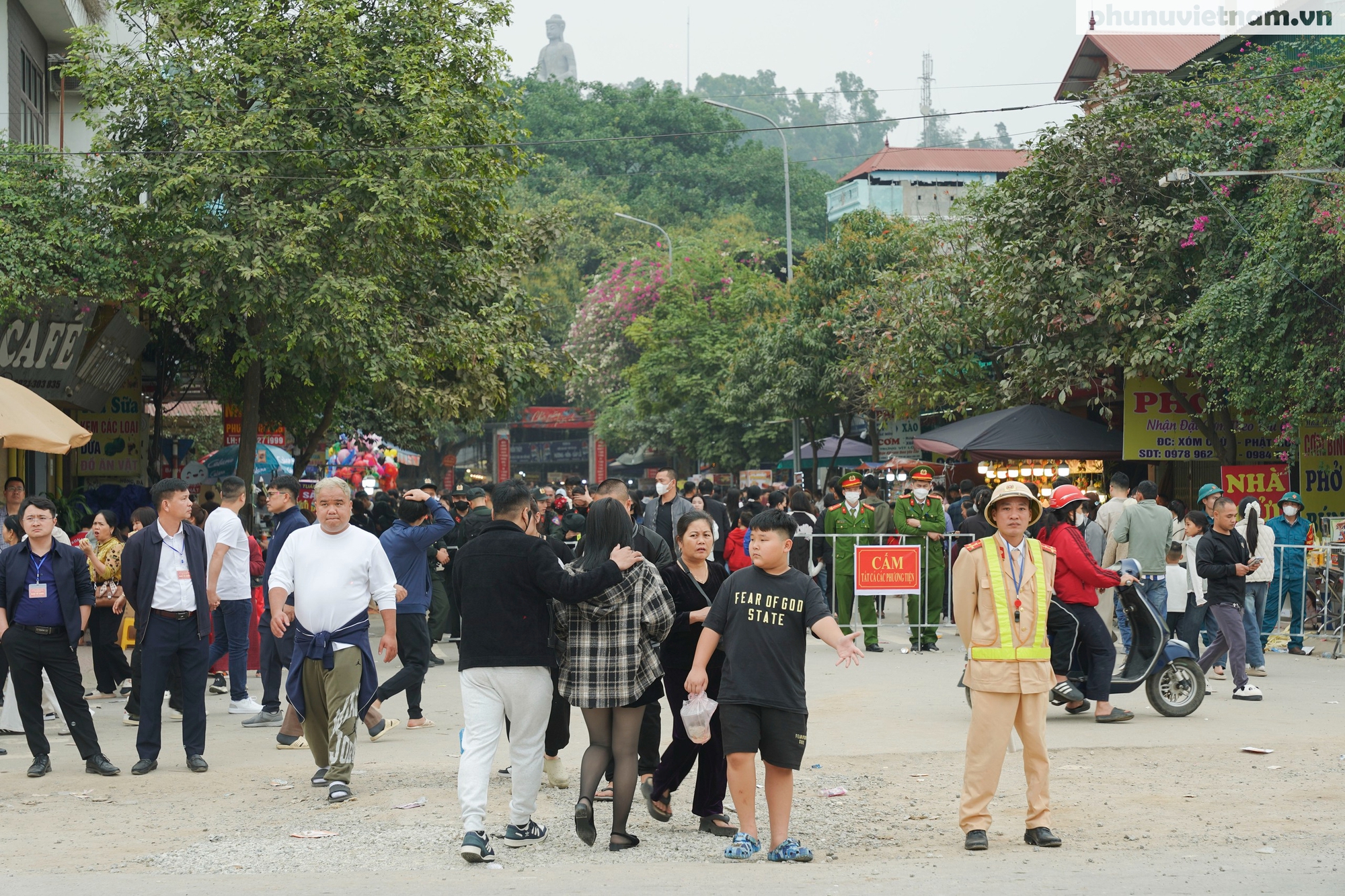 Cách đó khoảng 10km, không khí du Xuân tại chùa Phật Tích (xã Phật Tích) cũng tấp nập không kém khiến các bãi gửi xe chật ních. Lực lượng chức năng đã phải túc trực liên tục để phân luồng, hướng dẫn các phương tiện lưu thông an toàn qua khu vực di tích.