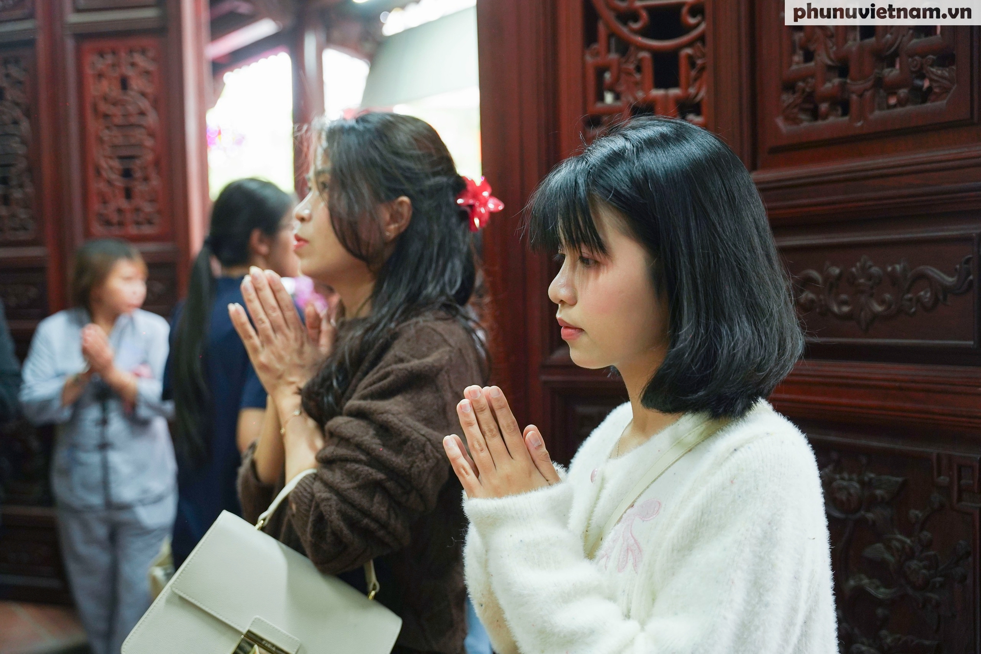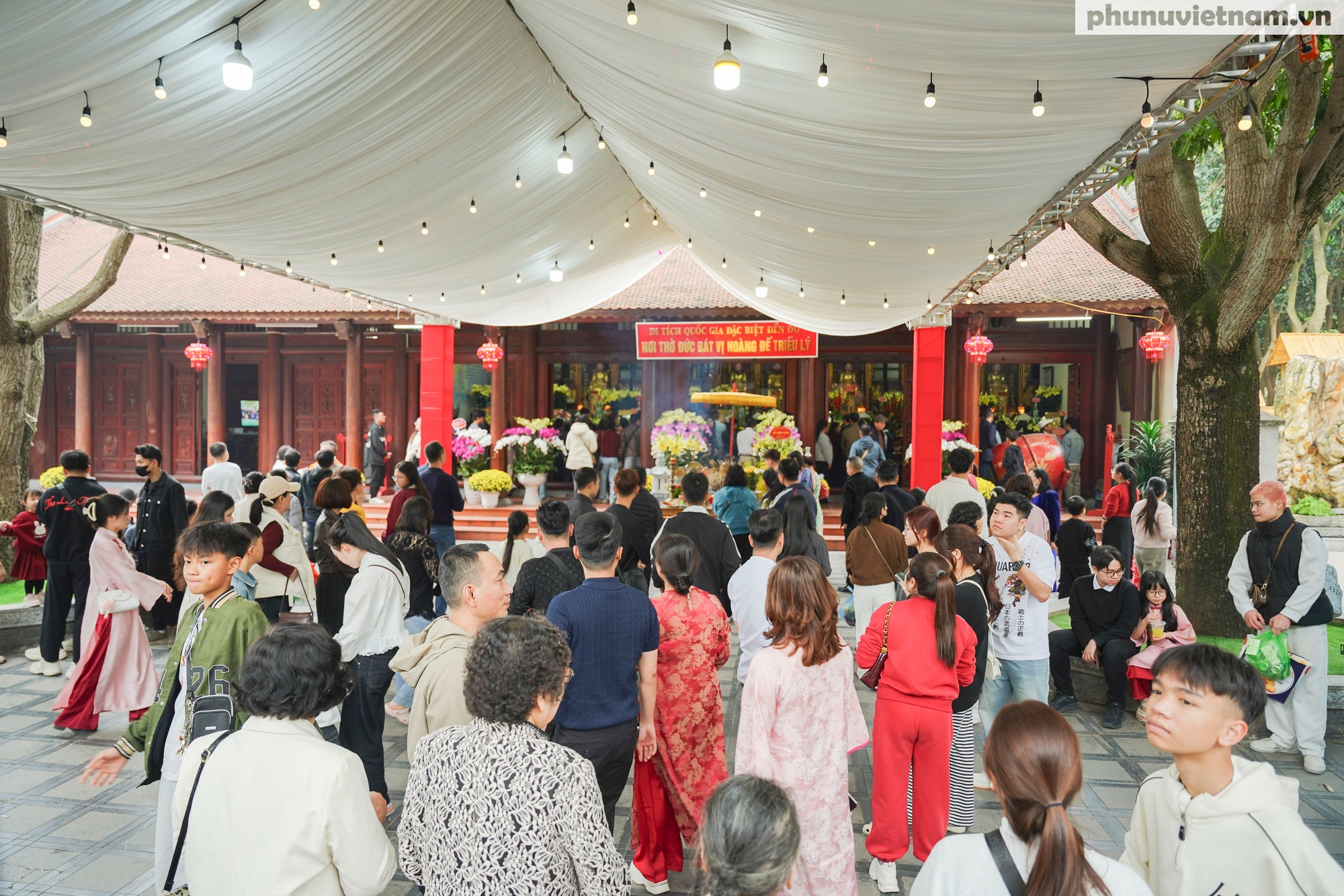 Tiến vào sâu bên trong, hàng ngàn du khách thành kính thắp nén tâm nhang, nghiêng mình trước anh linh của bát vị Hoàng đế nhà Lý. Không gian linh thiêng hòa quyện cùng khói nhang mờ ảo tạo nên sự tĩnh tại trong tâm hồn du khách những ngày đầu năm.