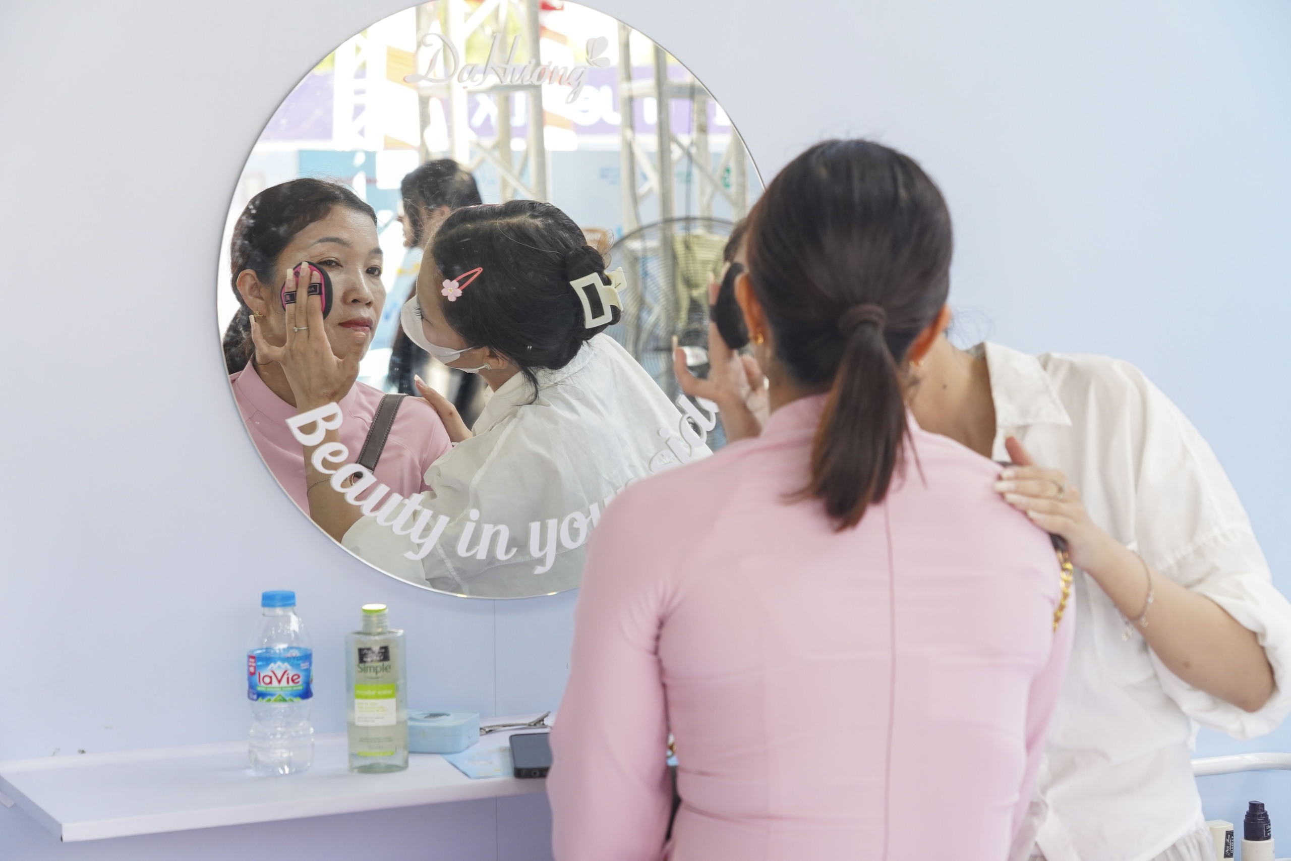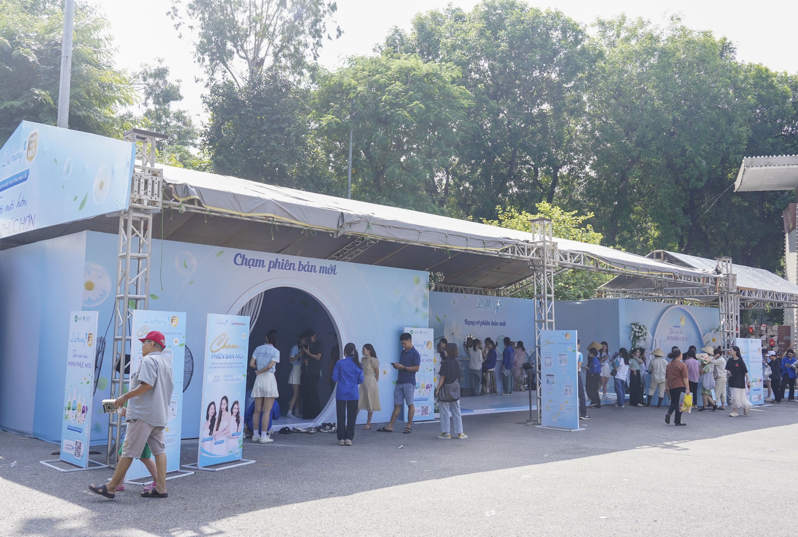 Khu vực "Chạm... Phiên Bản Mới" của nhãn hàng Dạ Hương nổi bật với thiết kế ấn tượng, mời gọi phái đẹp sống chậm lại để cảm nhận và làm mới chính mình. Không gian được thiết kế tinh tế giúp phụ nữ đi qua 4 chặng: Lắng nghe - Thấu hiểu - Làm mới - Chăm sóc, để tìm thấy phiên bản rạng rỡ và hạnh phúc hơn từ bên trong.