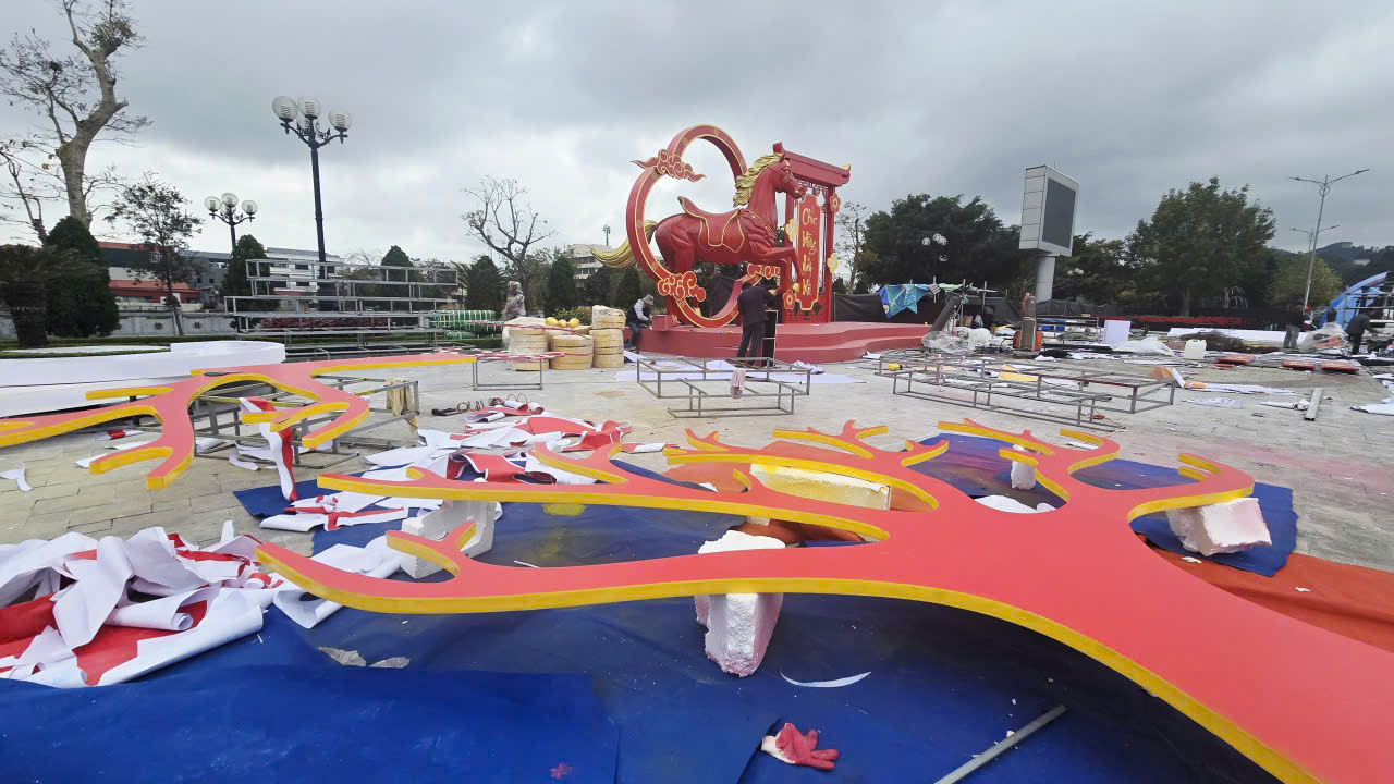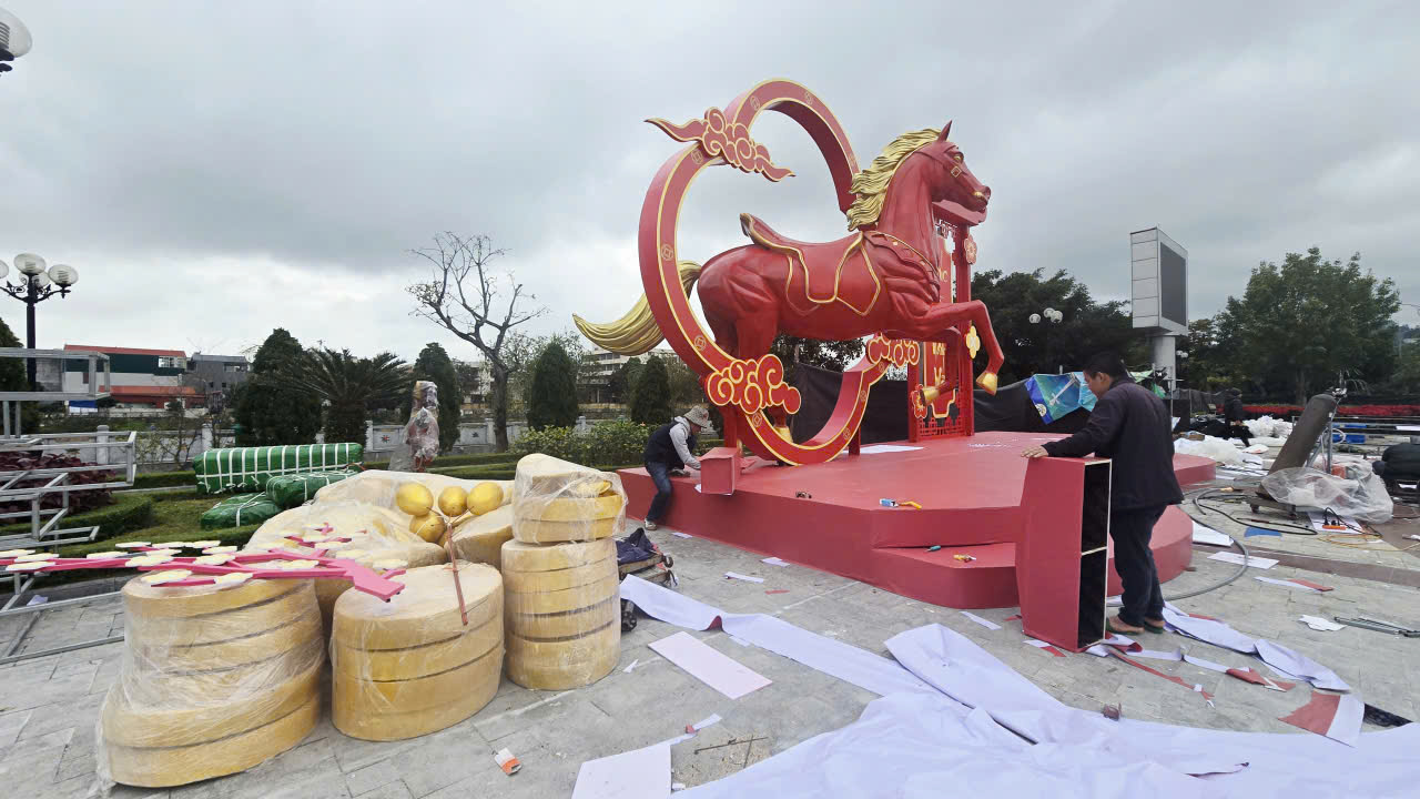 Theo anh Chiến, vài tháng trước khi nhận lời tham gia thiết kế, trưng bày, trang trí tại đường hoa xuân trong Lễ hội Hoa đào Xứ Lạng 2026, đơn vị của anh đã lên ý tưởng và các nghệ nhân đã bắt tay vào phác thảo, dựng lên những chú ngưa cao chừng 3 mét, rộng 11 mét, nặng độ 2 tạ có đế chân và các họa tiết trang trí xung quanh.