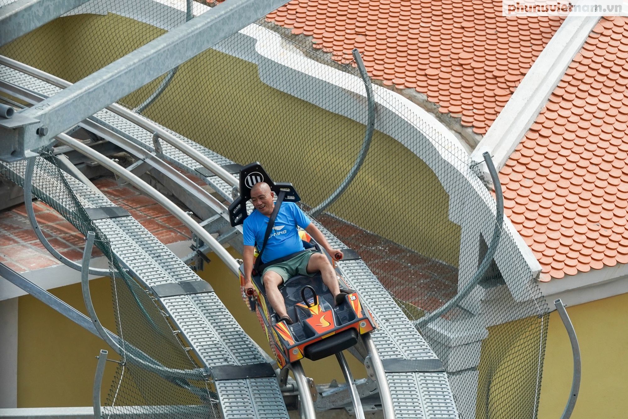 Tiếp nối hành trình, điểm nhấn được mong chờ nhất chính là trò chơi trượt núi 900m độc đáo. Đường trượt ôm sát sườn núi, view biển xanh ngút ngàn, kết hợp những khúc cua gắt và vòng xoay tốc độ mang lại cảm giác vừa hồi hộp vừa phấn khích. Cùng với đó, du khách còn có thể thử sức với cung đường phiêu lưu vượt cầu dây, đu zipline giữa trời biển và chiến thuyền đại dương “say sóng” trên không trung.