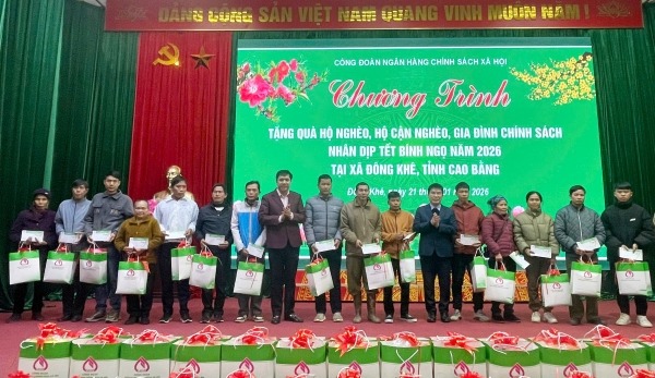 Trong dịp Tết Bính Ngọ 2026, Công đoàn Ngân hàng Chính sách xã hội (NHCSXH) đã tổ chức thăm hỏi, trao tặng quà Tết cho các hộ nghèo, hộ cận nghèo và các đối tượng chính sách tại nhiều tỉnh, thành phố trên cả nước với tổng kinh phí trên 7.543 triệu đồng.
