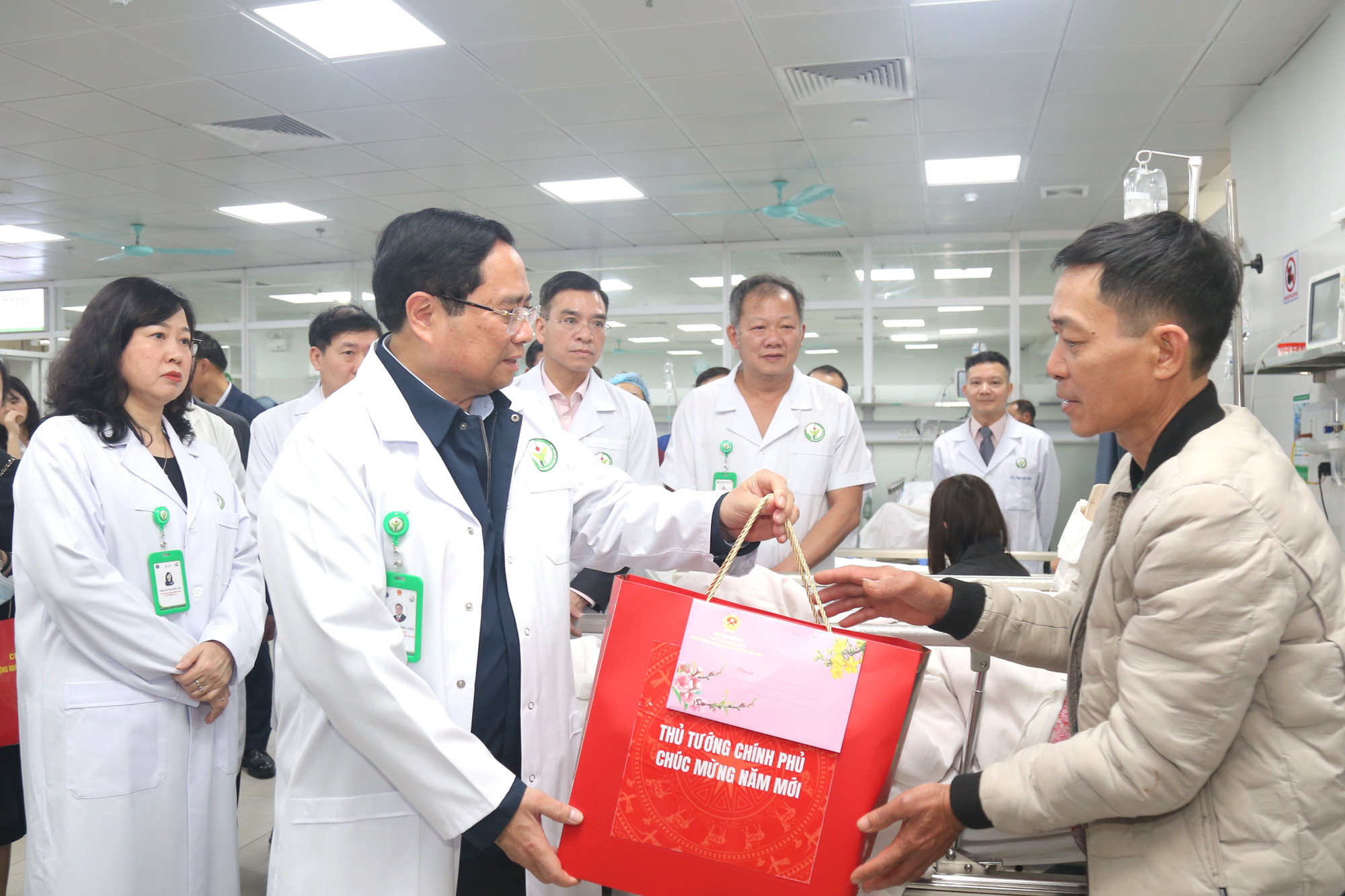 Thủ tướng tặng quà Tết cho các bệnh nhân đang điều trị tại Bệnh viện Hữu nghị Việt Đức. (Ảnh: PV/Vietnam+)