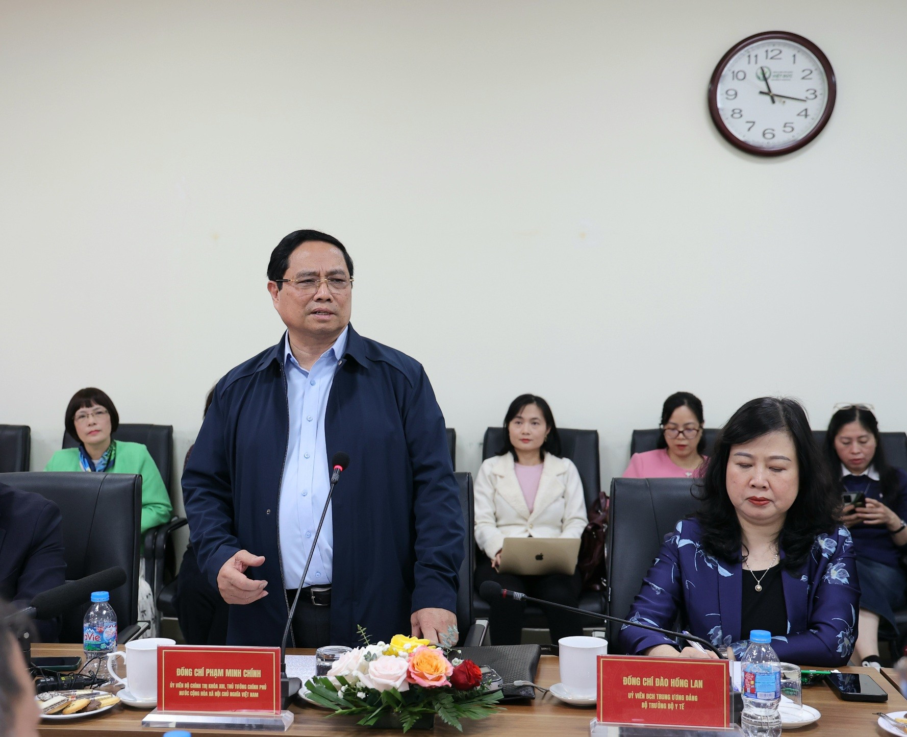 Về cơ chế tài chính, Thủ tướng đề nghị Bộ Y tế cân đối nguồn lực, bảo đảm kinh phí chi thường xuyên để cơ sở 2 vận hành hiệu quả, đồng thời quan tâm nâng cấp cơ sở 1. Thủ tướng yêu cầu xây dựng đề án phát triển tổng thể cả hai cơ sở như một bệnh viện thống nhất, triển khai càng sớm càng tốt, với lộ trình 5 năm và tầm nhìn dài hạn. Đề án cần bảo đảm 6 rõ: Rõ người, rõ việc, rõ thời gian, rõ thẩm quyền, rõ trách nhiệm và rõ sản phẩm; tập trung vào quy hoạch, đầu tư trang thiết bị, quản trị thông minh, chuyển giao công nghệ cao và nâng cao chất lượng nhân lực theo tinh thần Nghị quyết 72.