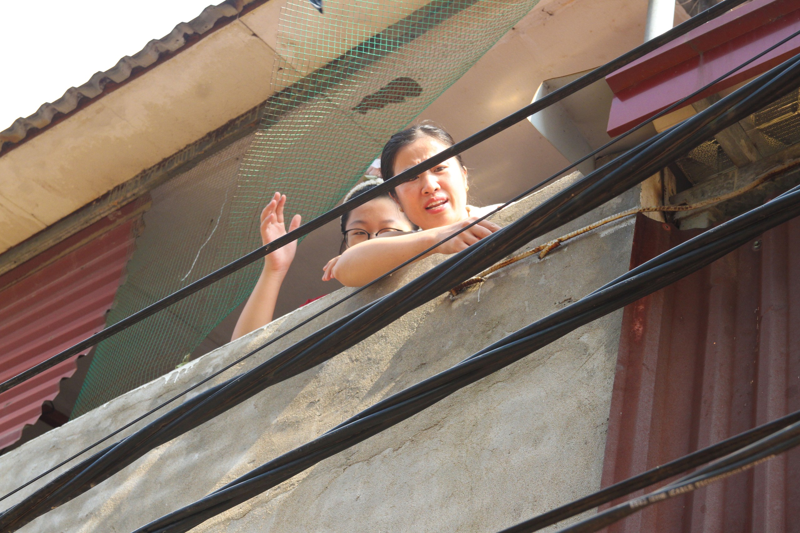 Trong khoảnh khắc ấy, mọi thứ phải được diễn ra rất cẩn thận để không có bất cứ một trường hợp đáng tiếc nào xảy ra. Tiếng anh Linh nhắc nhở vang lên đầy lo lắng: "Chị ơi, từ từ thôi ạ! Cẩn thận trơn trượt. Mẹ lên trước đi rồi đón con lên sau".