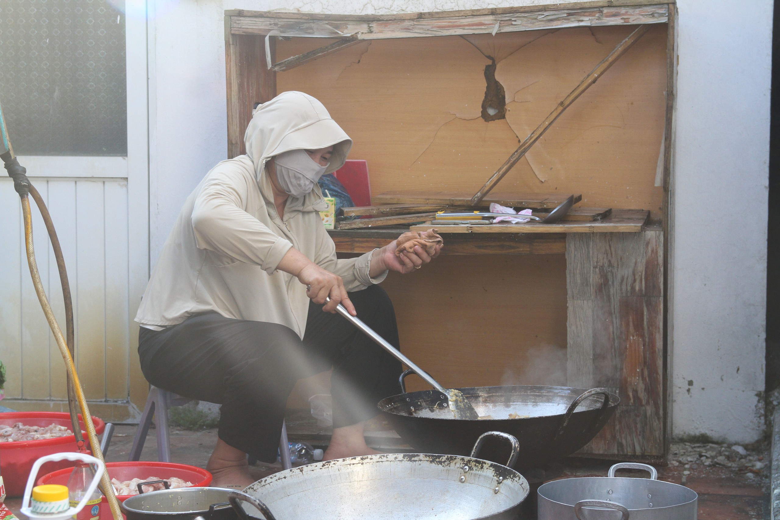 Chị Phạm Thị Luyến cùng các hội viên khác đã góp sức nấu nướng hàng nghìn suất cơm