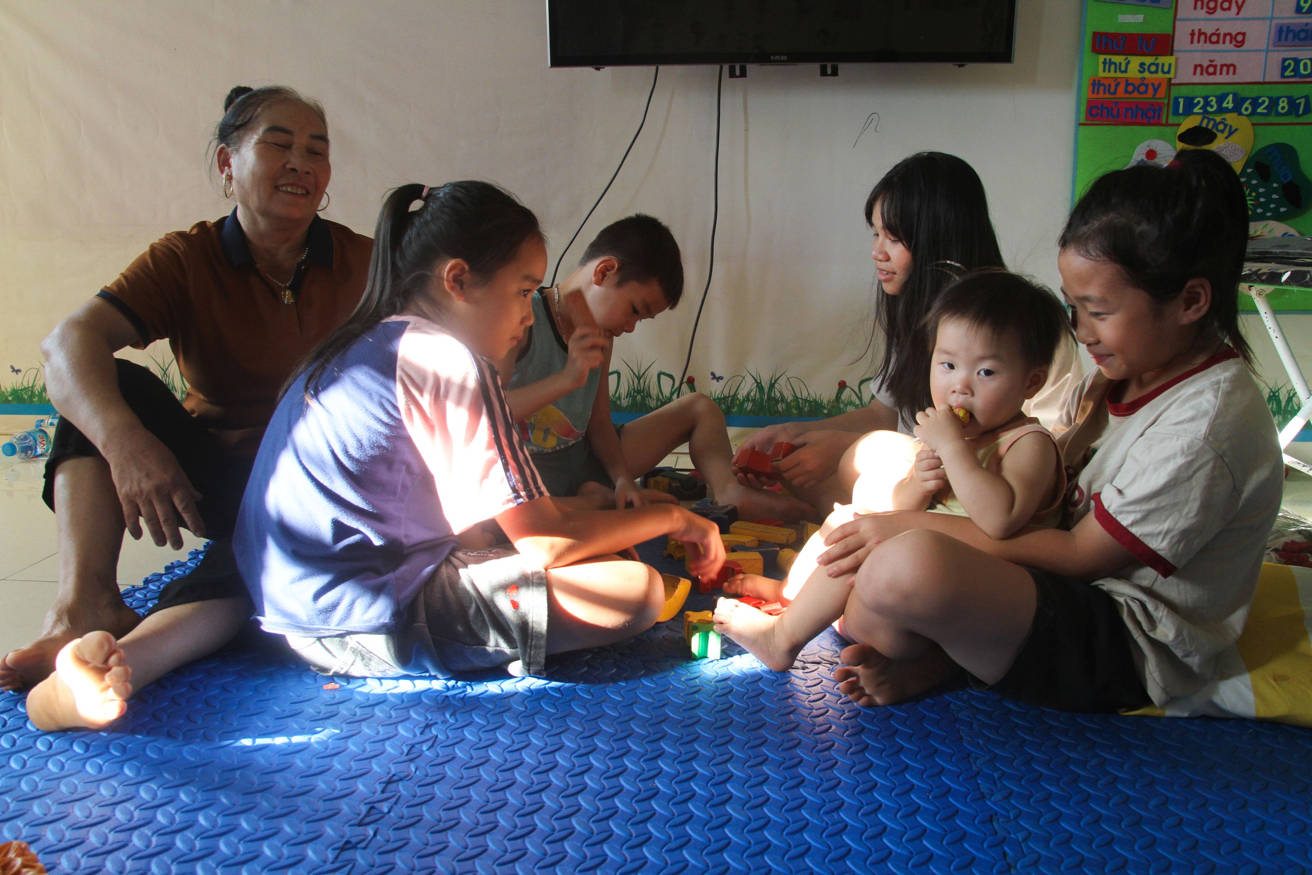 Để nơi đây thực sự là một "mái ấm", 54 cán bộ, giáo viên, nhân viên của Trường Mầm non xã Hợp Thịnh đã dốc sức cùng Đoàn Thanh niên và Hội LHPN địa phương quan tâm, chăm lo cho những người dân gặp hoạn nạn.