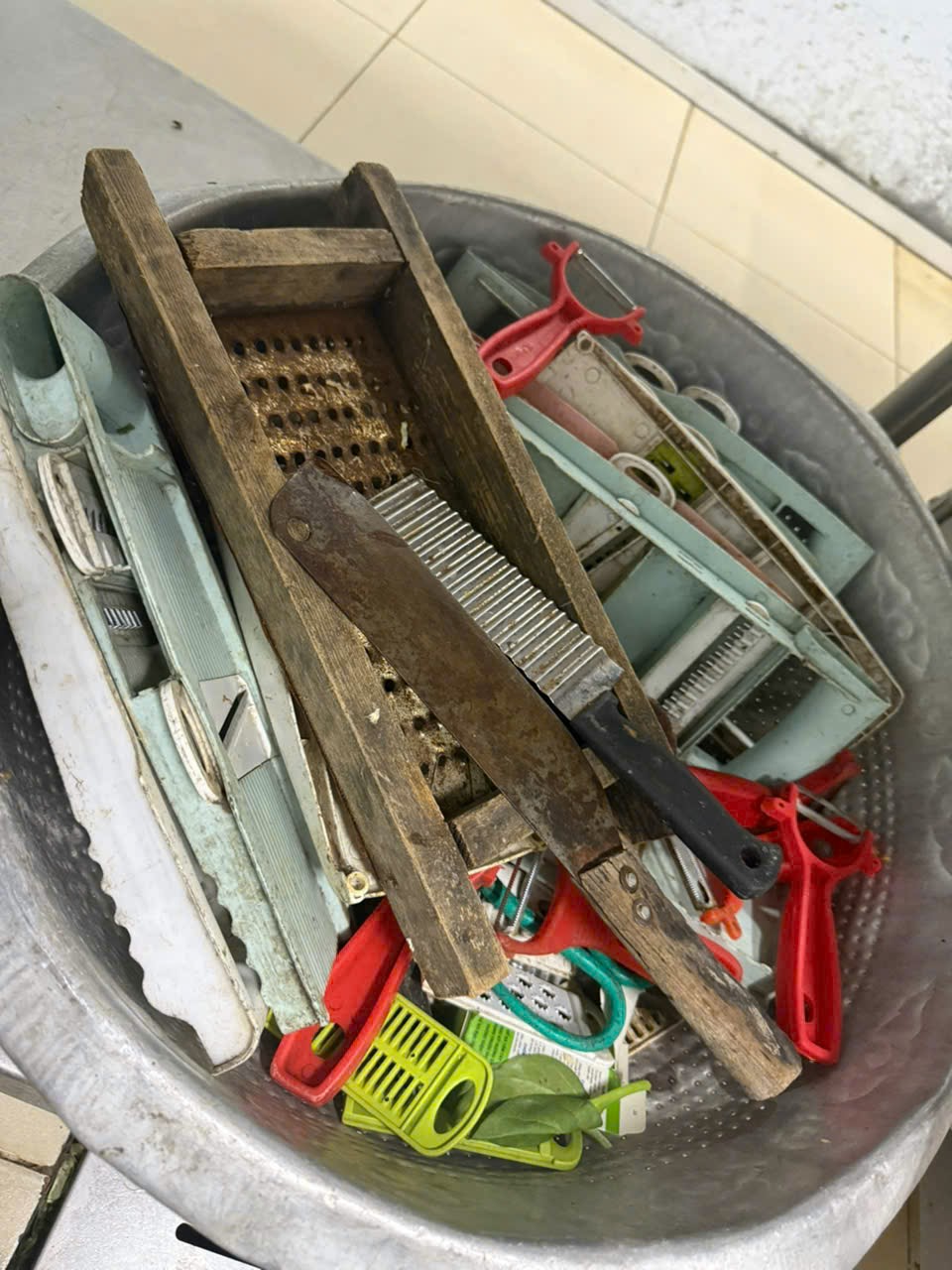Cũng theo vị phụ huynh này, đội ngũ nhân viên nhà bếp là những người trực tiếp chế biến thức ăn cho học sinh không báo cáo khi nhận thấy thực phẩm có vấn đề. Những người trực tiếp sơ chế, chế biến thực phẩm cho học sinh thiếu trách nhiệm khi để đồ dùng nấu ăn không đảm bảo vệ sinh sạch sẽ như dao han gỉ, rổ giá bám bẩn...