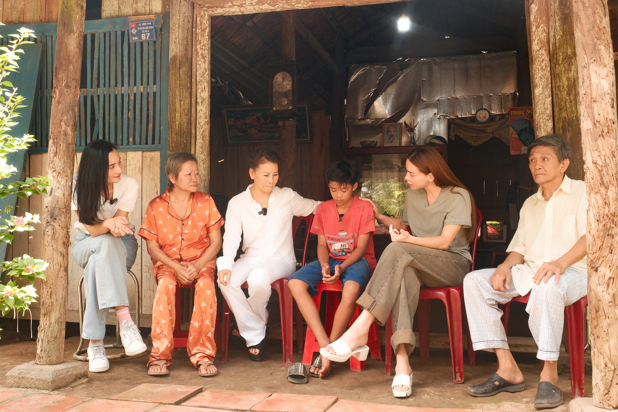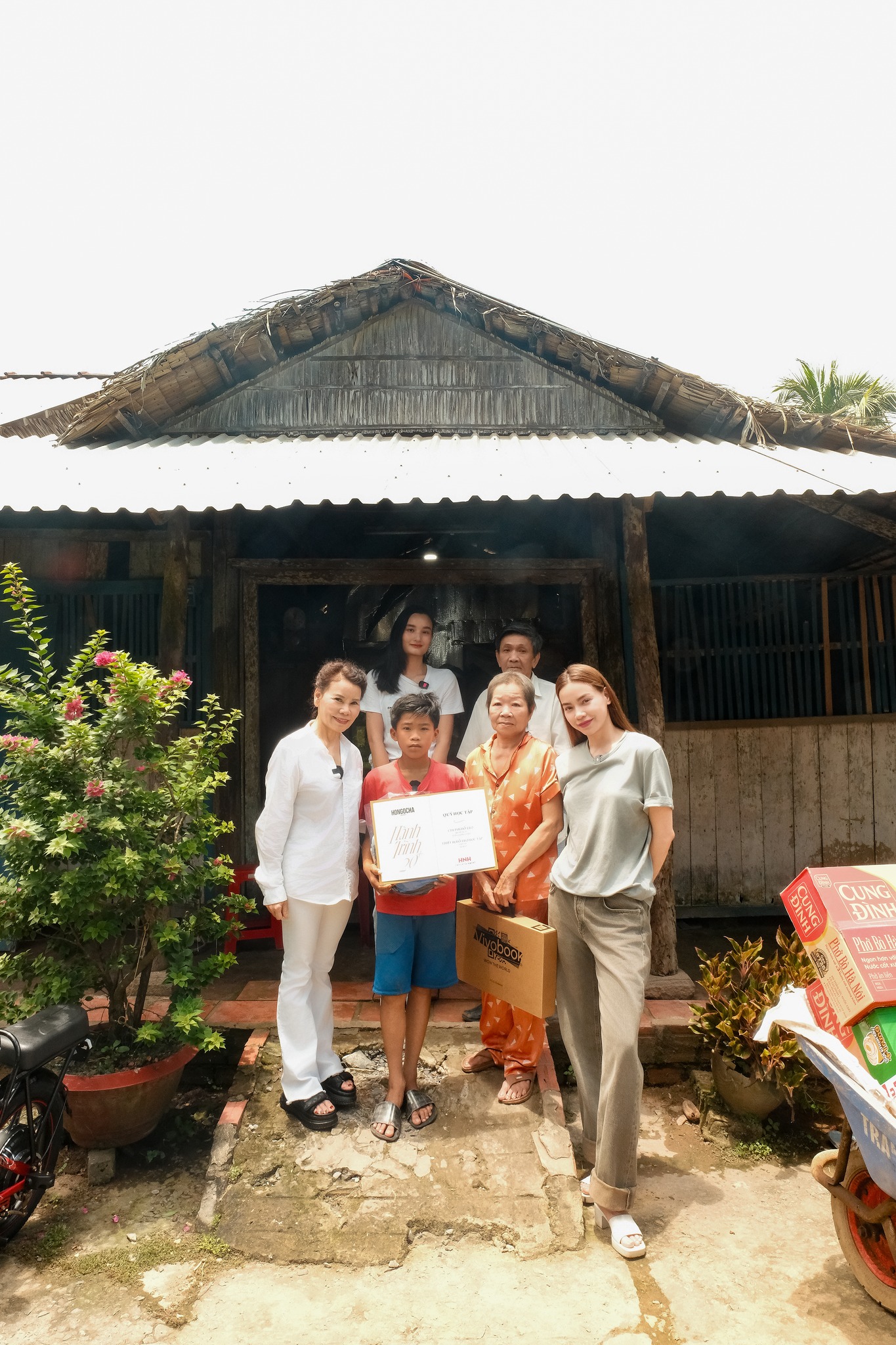 Điểm dừng đầu tiên của hành trình là tỉnh Bến Tre, nơi Hồ Ngọc Hà cùng mẹ ruột và người mẫu Lê Thúy đã đến thăm một hộ gia đình khó khăn. Giữa khung cảnh bình dị của miền sông nước, câu chuyện của cậu bé Quan Giàu khiến cả đoàn lặng người.