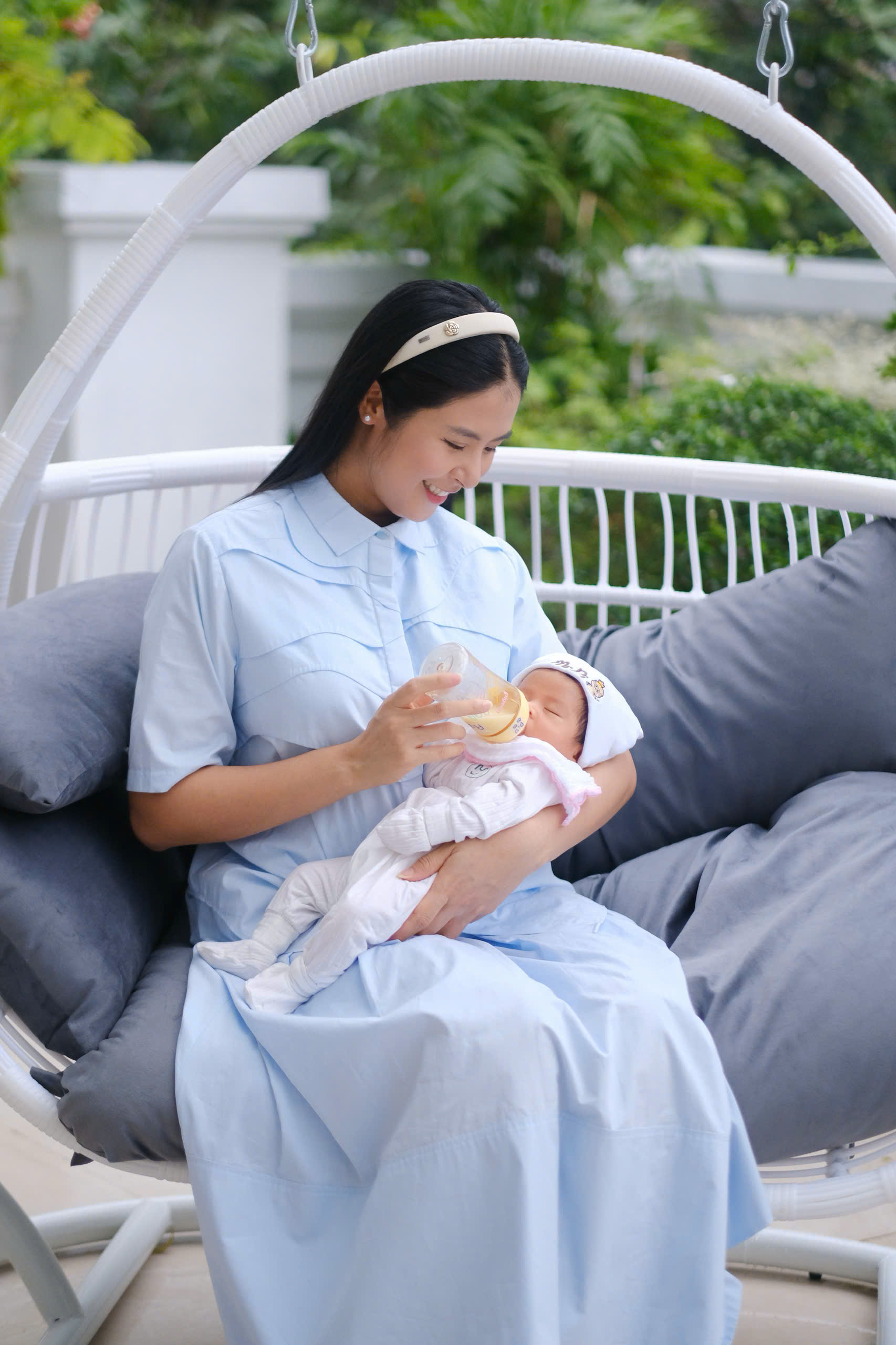 Trái ngược với nhiều người lo sợ áp lực sau sinh, Ngọc Hân khẳng định cô luôn giữ được tinh thần vui vẻ, tích cực: "Ngày nào cũng bận rộn với con nên tôi không có thời gian để buồn hay stress. Tôi cảm thấy mỗi ngày đều trôi qua nhanh, nhưng ngập tràn niềm hạnh phúc".