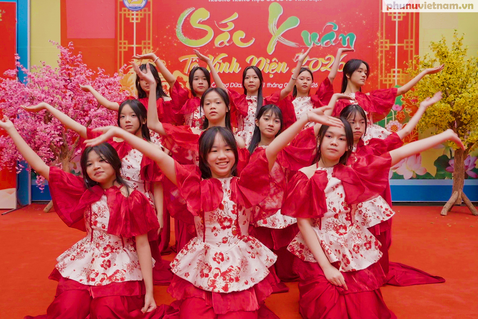 Các tiết mục văn nghệ chào Xuân được dàn dựng công phu với màu sắc tươi vui, mang đến không khí rộn ràng, mở màn đầy hứng khởi cho chuỗi hoạt động trải nghiệm.