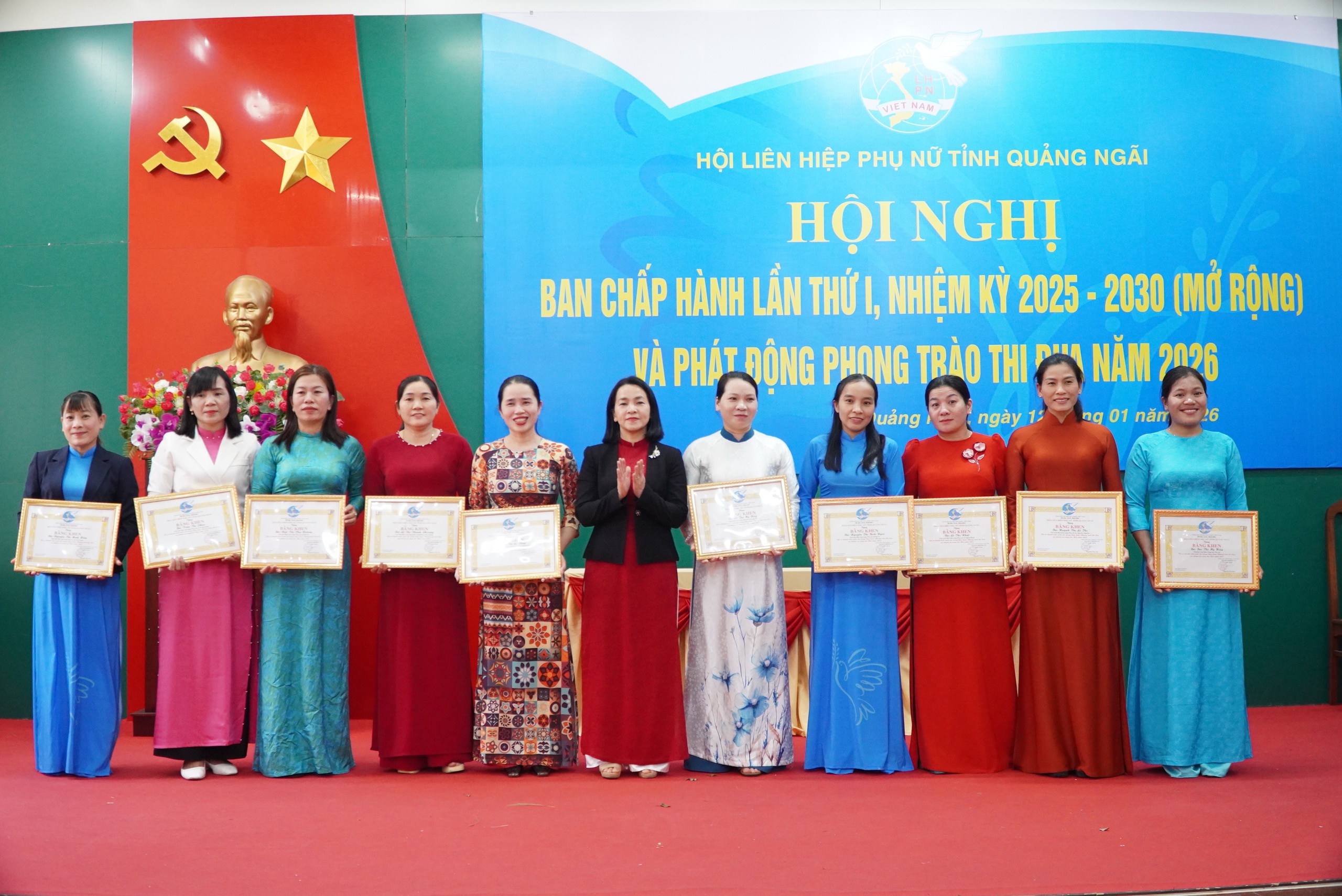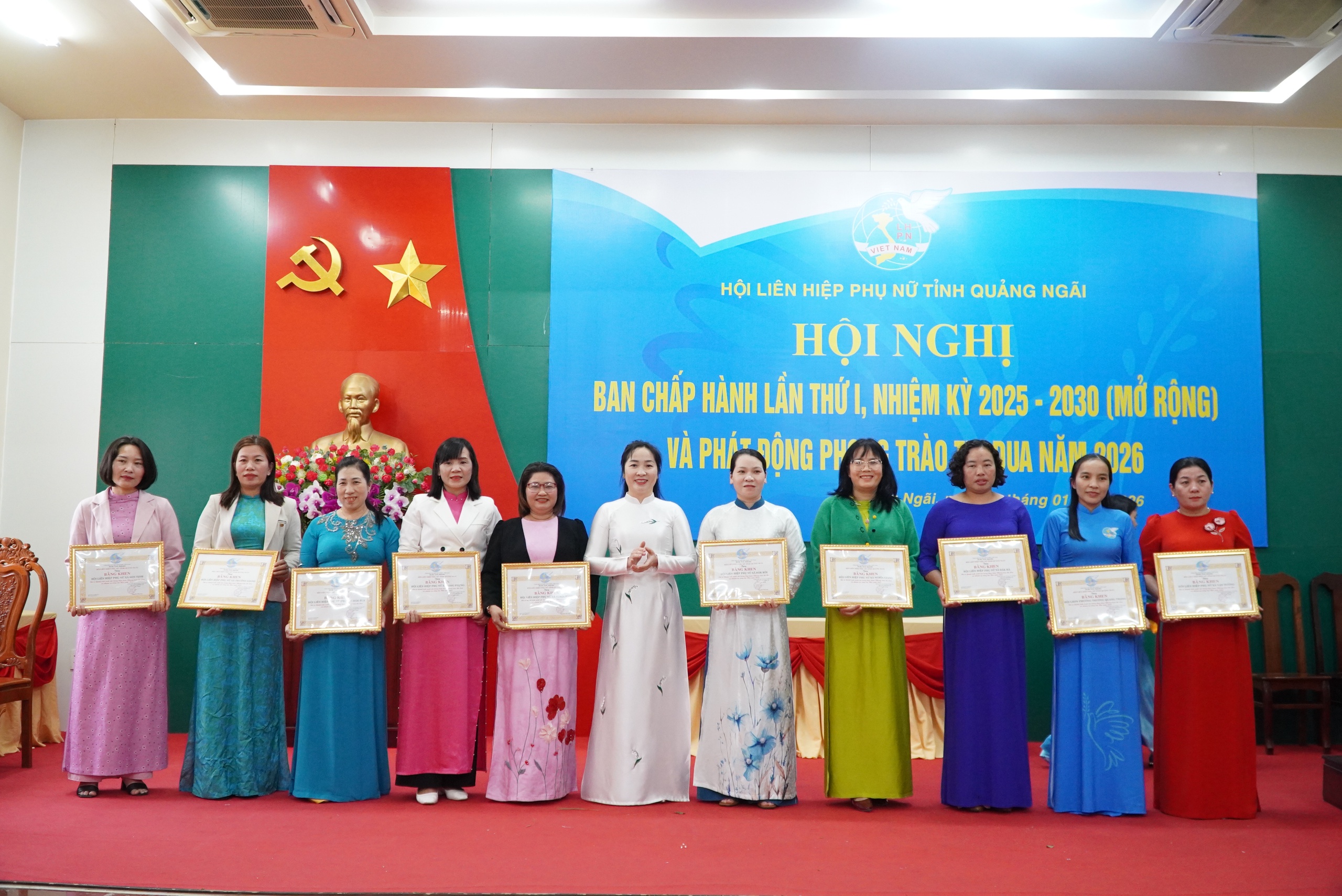 Tại Hội nghị, Hội LHPN tỉnh đã chính thức phát động phong trào thi đua năm 2026. Với các cấp Hội tỉnh Quảng Ngãi, đây là năm có ý nghĩa đặc biệt quan trọng khi diễn ra Đại hội Đảng toàn quốc lần thứ XIV và là năm đầu tiên triển khai Nghị quyết Đại hội đại biểu Phụ nữ tỉnh lần thứ I.