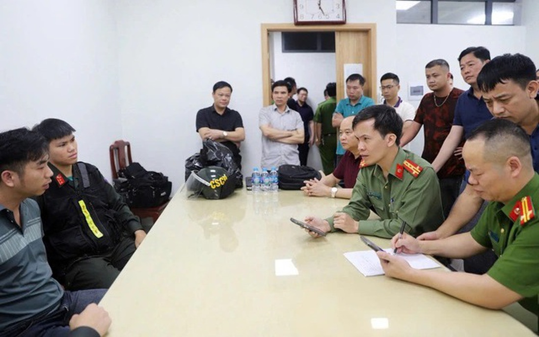 Lực lượng chức năng hỏi cung các đối tượng. Ảnh: Công an tỉnh Bắc Ninh