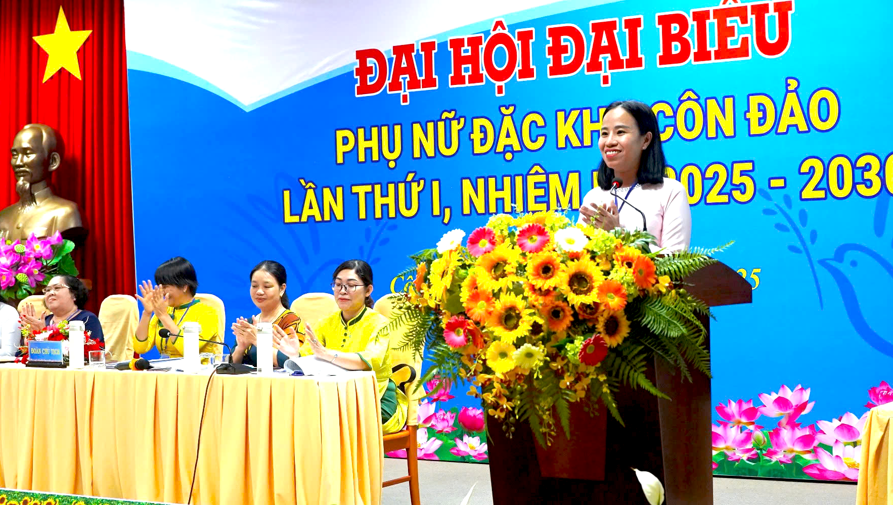 Bà Võ Ngọc Thanh Trúc phát biểu tại Đại hội Đại biểu Hội LHPN đặc khu Côn Đảo