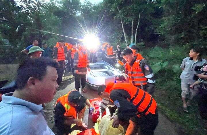 Đến khoảng 18h ngày 22/6, các xuồng máy đã tiếp cận được nhiều hộ dân đang bị nước lũ cô lập. Lực lượng công an tiến hành sơ tán người dân, vận chuyển tài sản ra khỏi khu vực nguy hiểm.