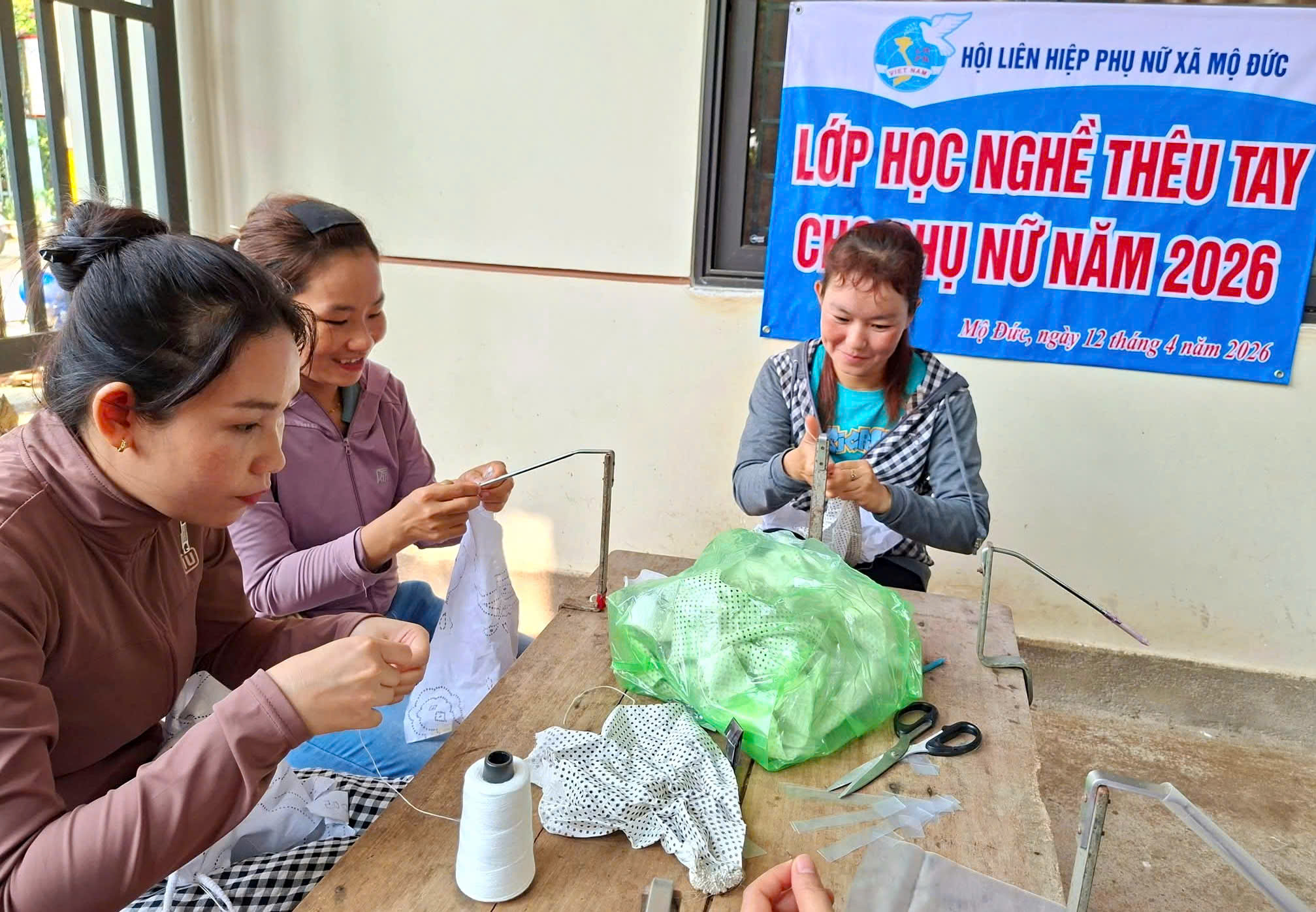 Chị Võ Thị Hường, Phó Chủ tịch Hội LHPN xã Mộ Đức chia sẻ thêm: "Khi đào tạo nghề cho hội viên, phụ nữ, chúng tôi luôn tâm niệm: Phải gắn đào tạo với đầu ra thì chị em mới yên tâm theo nghề. Chúng tôi lựa chọn mô hình phù hợp với điều kiện thực tế của phụ nữ địa phương vừa có thể làm tại nhà, vừa có thu nhập ổn định. Quan trọng hơn là tạo được niềm tin để chị em mạnh dạn tham gia, giúp chị em nâng cao thu nhập, khẳng định vai trò của phụ nữ trong phát triển kinh tế và xây dựng gia đình hạnh phúc.