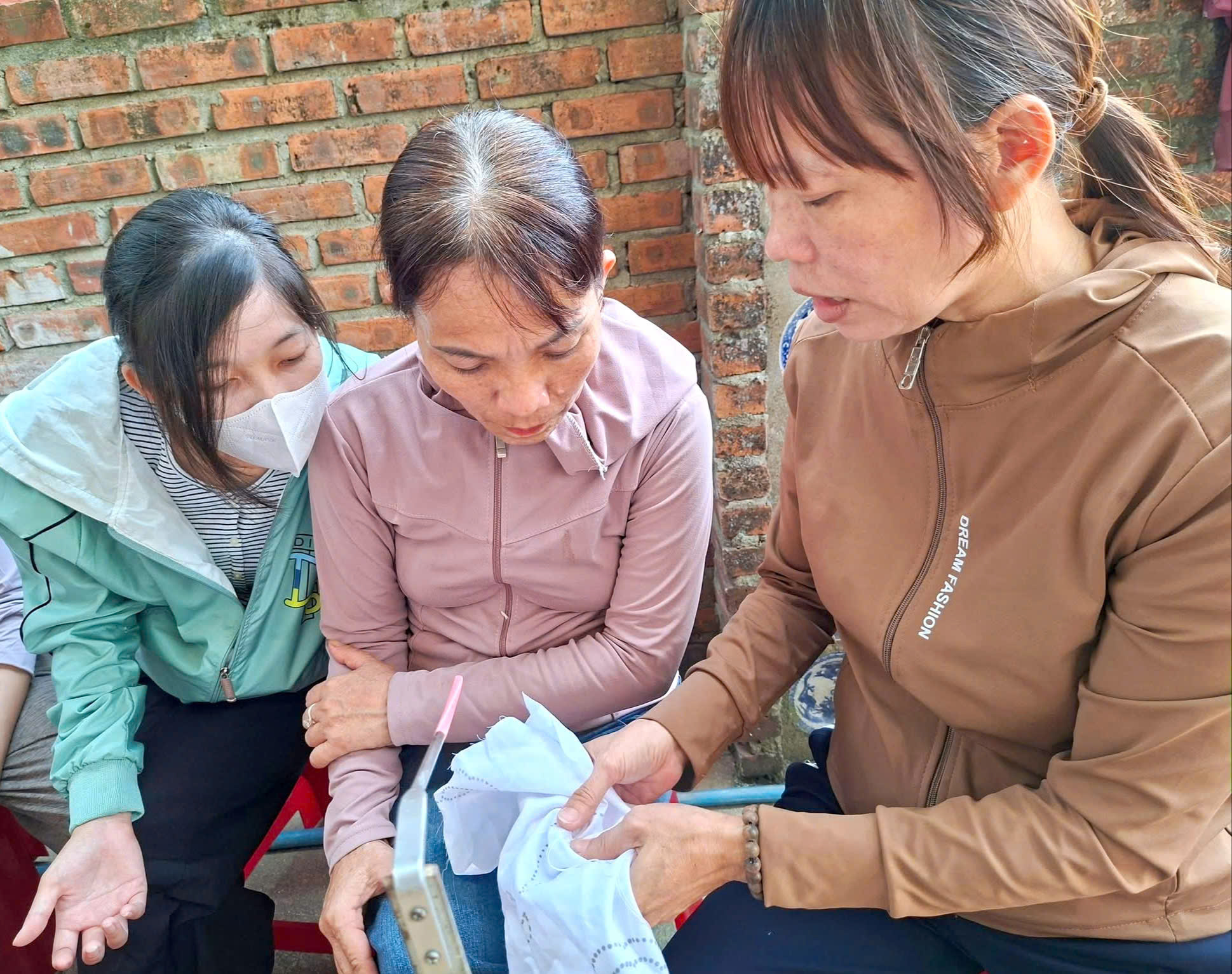 Hội viên, phụ nữ xã Mộ Đức, tỉnh Quảng Ngãi được hướng dẫn thực hành siết chỉ theo cách của người Nhật Bản