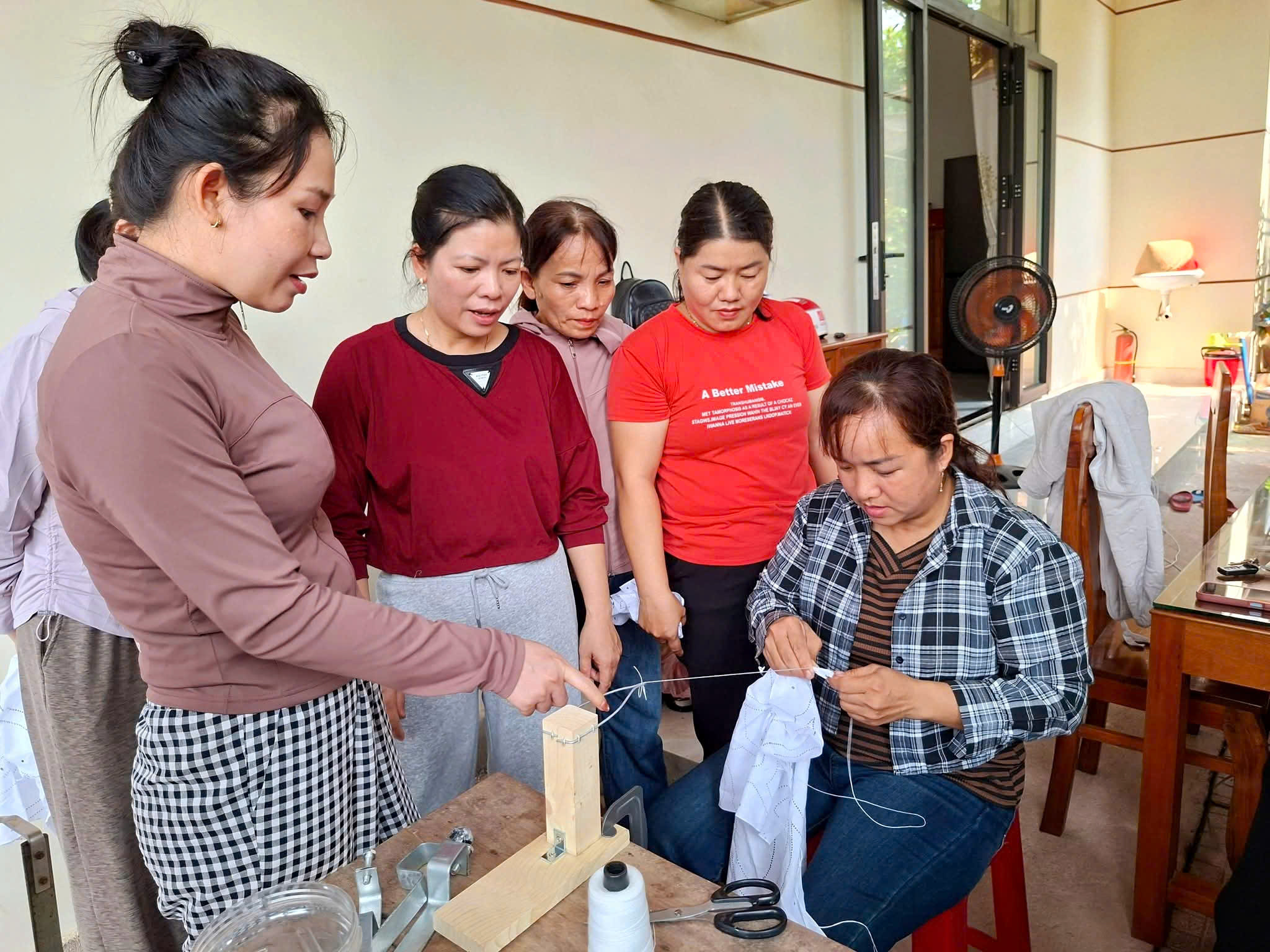 Lớp học không dừng ở việc truyền nghề mà ngay từ đầu, đầu ra sản phẩm đã được Hội LHPN xã tính đến. Sau khóa học, những học viên đạt yêu cầu kỹ thuật sẽ được nhận hàng từ doanh nghiệp về gia công tại nhà, hưởng công theo sản phẩm. Nếu chị em làm chăm chỉ, sản phẩm đảm bảo đúng yêu cầu, chất lượng có thể đạt thu nhập khoảng từ 4 triệu đồng/tháng".