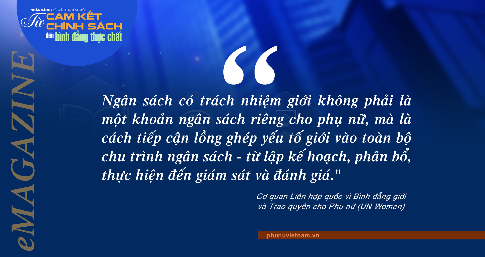 Xác định rõ vai trò quan trọng của ngân sách có trách nhiệm giới, trong 30 năm thực hiện Cương lĩnh Hành động Bắc Kinh, đặc biệt là trong những năm gần đây, Chính phủ Việt Nam đã thể hiện quyết tâm mạnh mẽ trong việc thúc đẩy quyền bình đẳng của phụ nữ và nam giới thông qua việc hoàn thiện hệ thống pháp luật. Quan điểm "không để ai bị bỏ lại phía sau" được lồng ghép xuyên suốt trong chiến lược, chính sách, pháp luật và chương trình mục tiêu quốc gia.