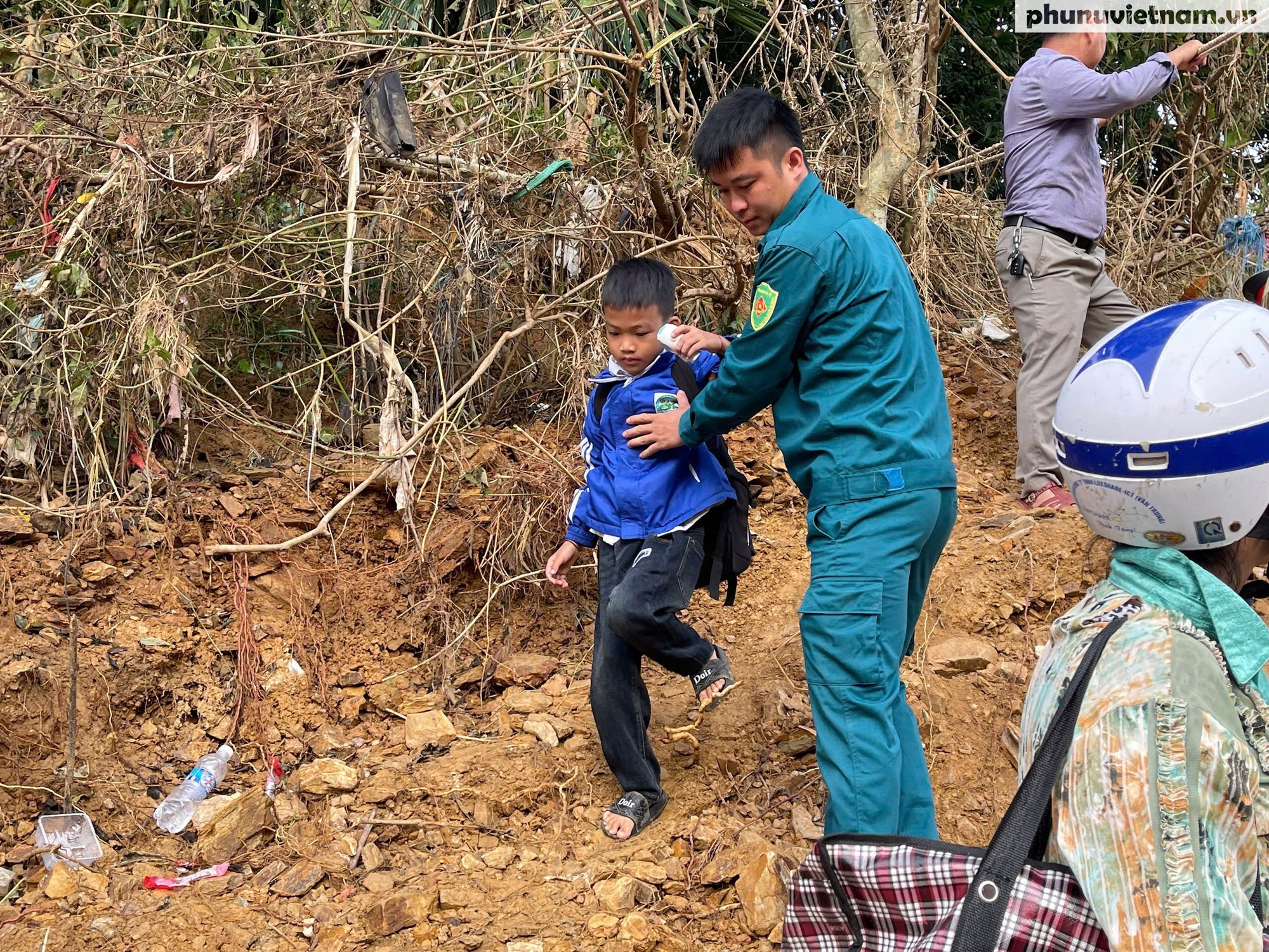 Theo đó, phụ huynh chở con tới bên bờ suối Huồi Nguyên và chờ lực lượng chức năng đưa qua sông.