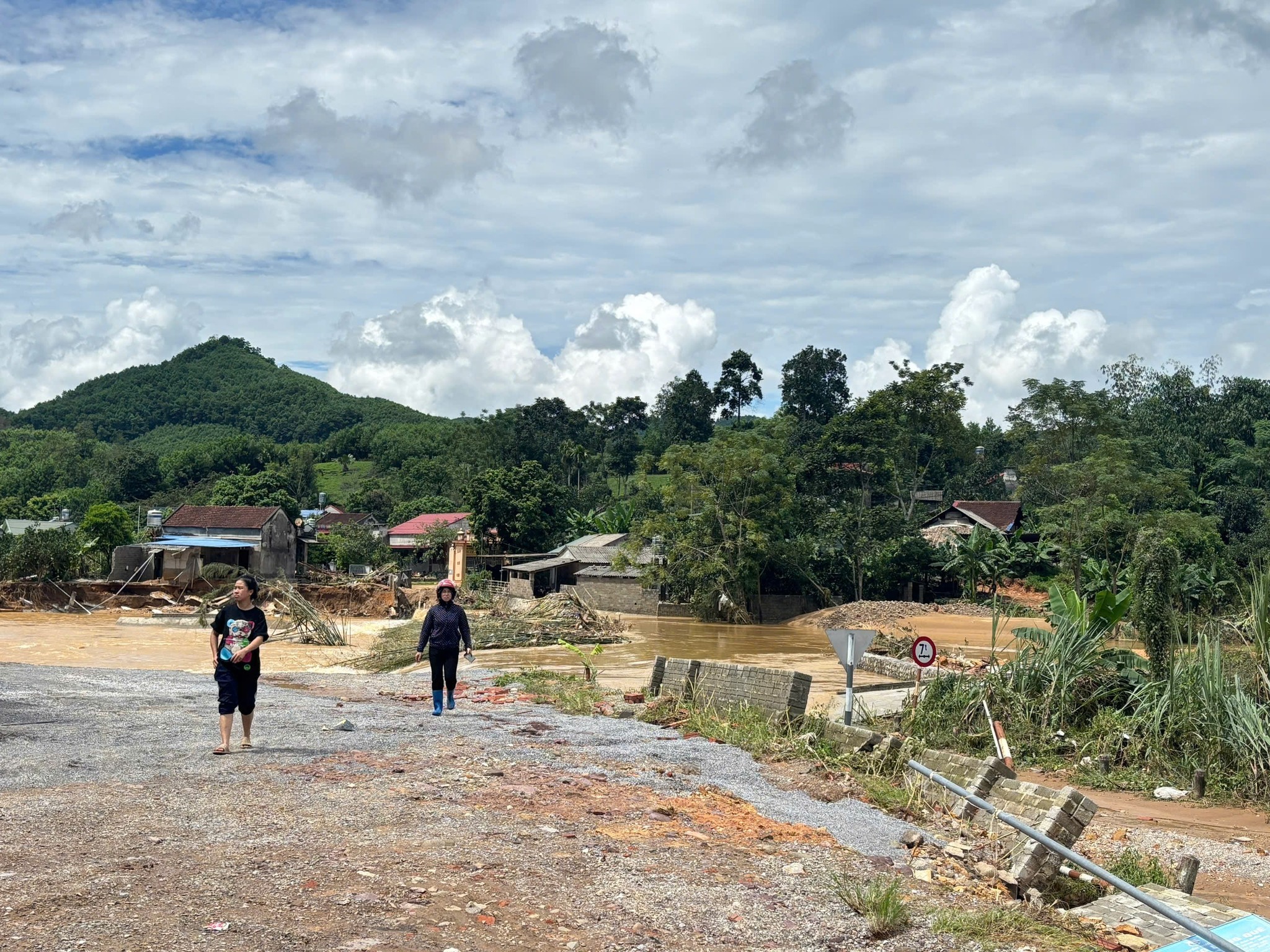 Căn nhà gỗ bao năm che mưa che nắng của vợ chồng bà Yến nằm ngay sát dòng nước lũ. Chỉ trong chốc lát, nước từ thượng nguồn đổ về cuồn cuộn, dâng nhanh, xô sập từng mảng tường, mái tôn, nhấn chìm rồi cuốn phăng mọi thứ. "Nát bươm, trôi hết, chẳng còn lại gì…", bà Yến nghẹn ngào khi nhắc lại khoảnh khắc ấy. Hai vợ chồng bà chỉ kịp bỏ của chạy lấy người, khoác vội chiếc áo mưa, lao vào màn đêm sang nhà người em chú (em ruột của chồng bà) lánh nạn. Nhưng nước vẫn dâng đuổi sát gót, họ lại phải tiếp tục chạy lên tầng hai nhà người thím để thoát thân.
