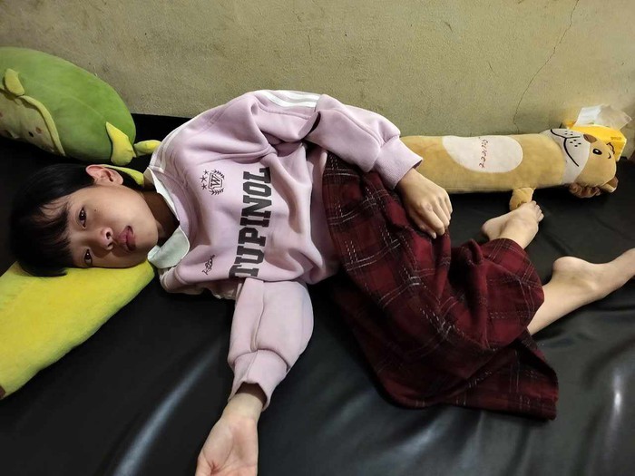 Bệnh tật hành hạ khiến sức khoẻ của Luyến ngày càng suy kiệt, 16 tuổi chỉ nặng 18kg, chân tay teo rút lại.