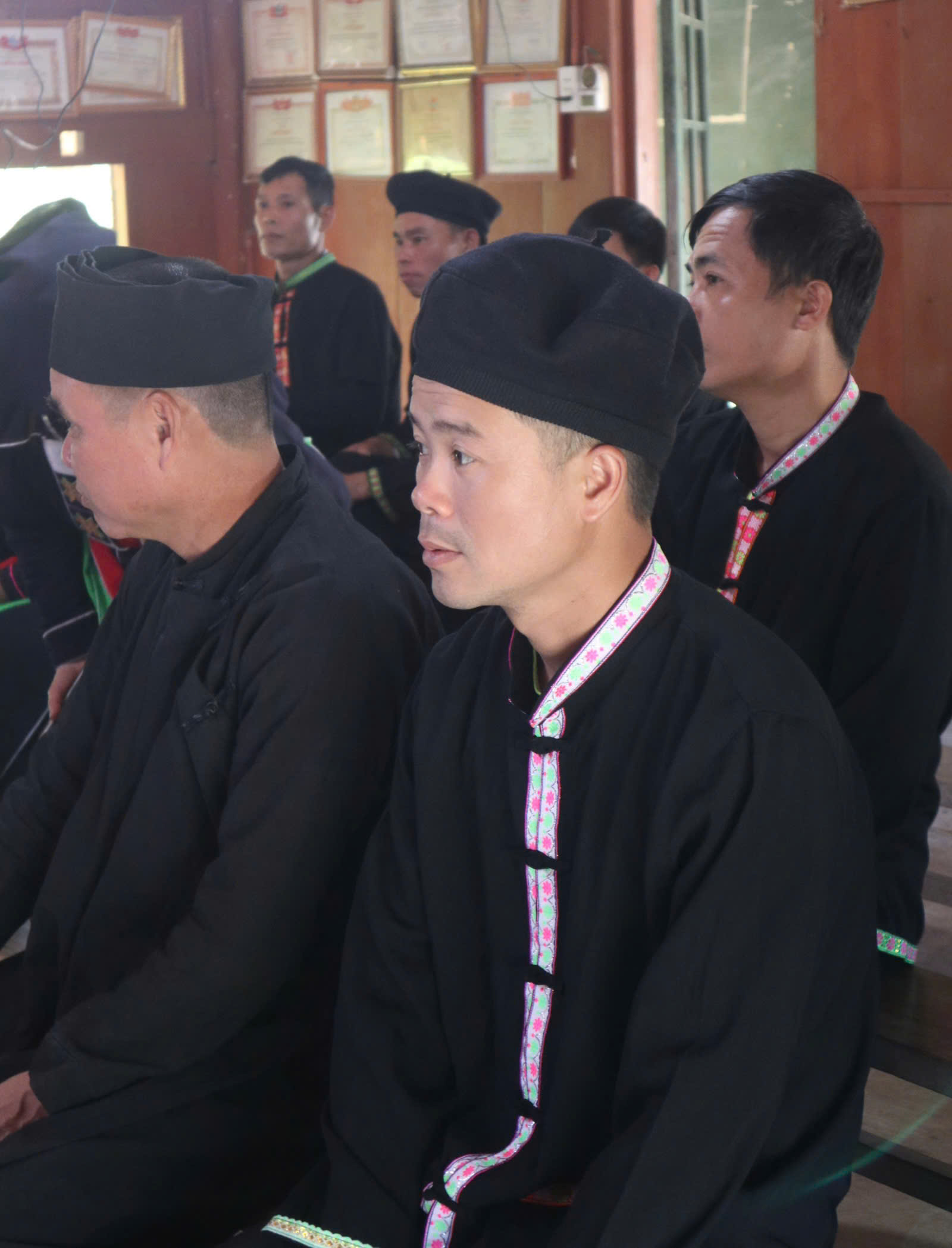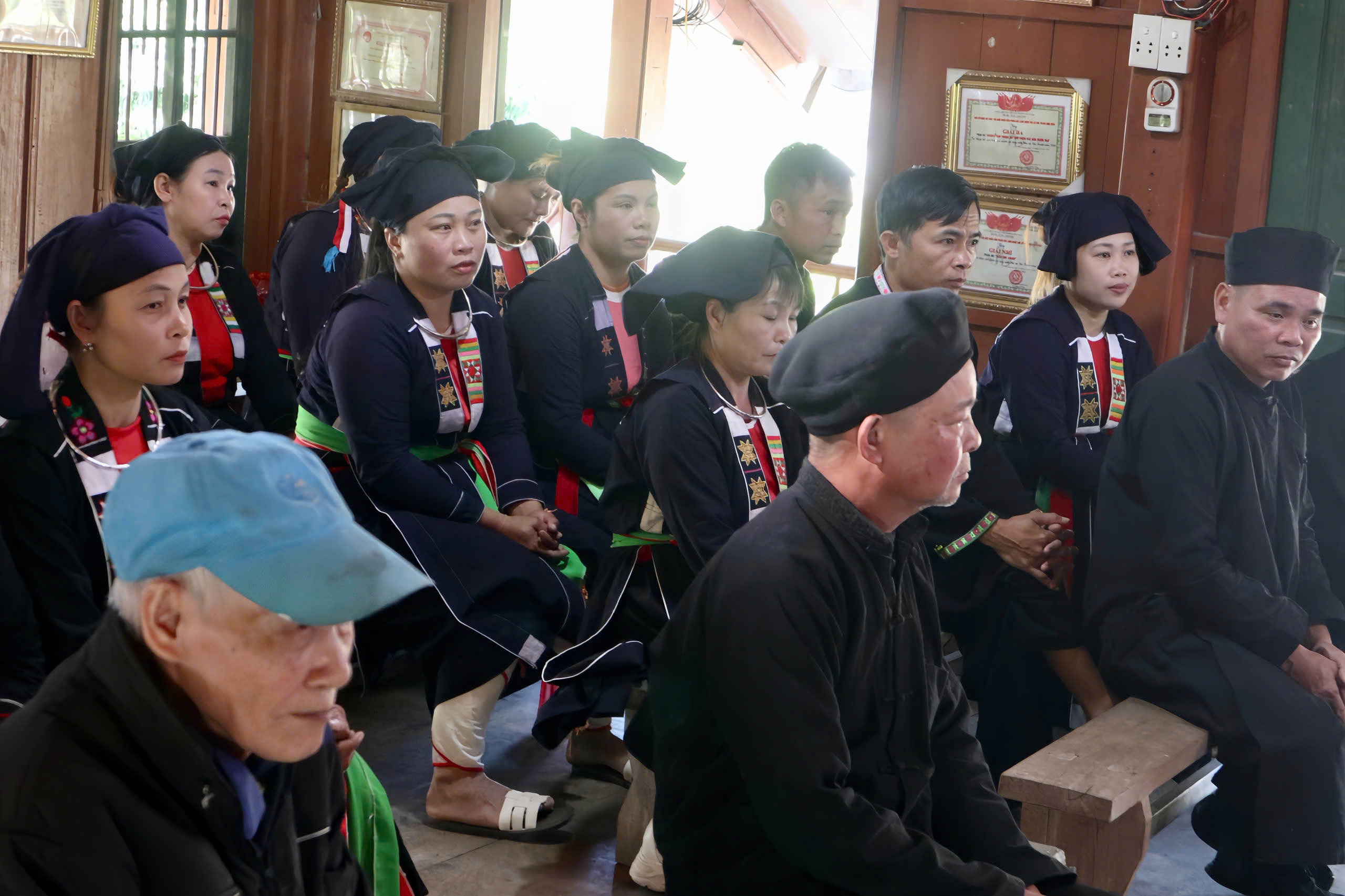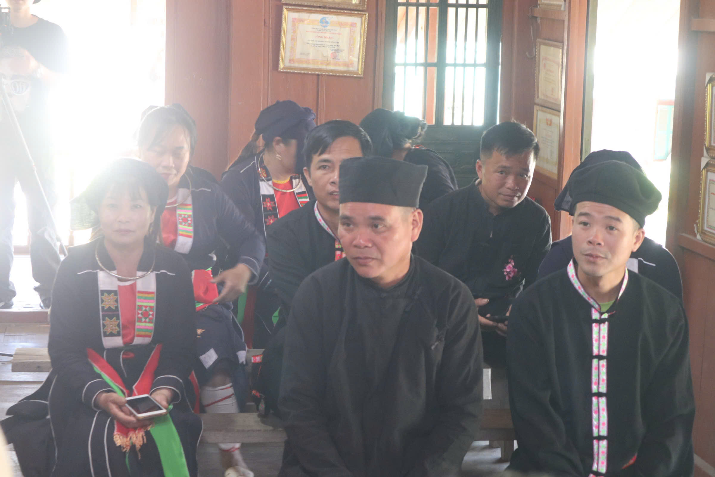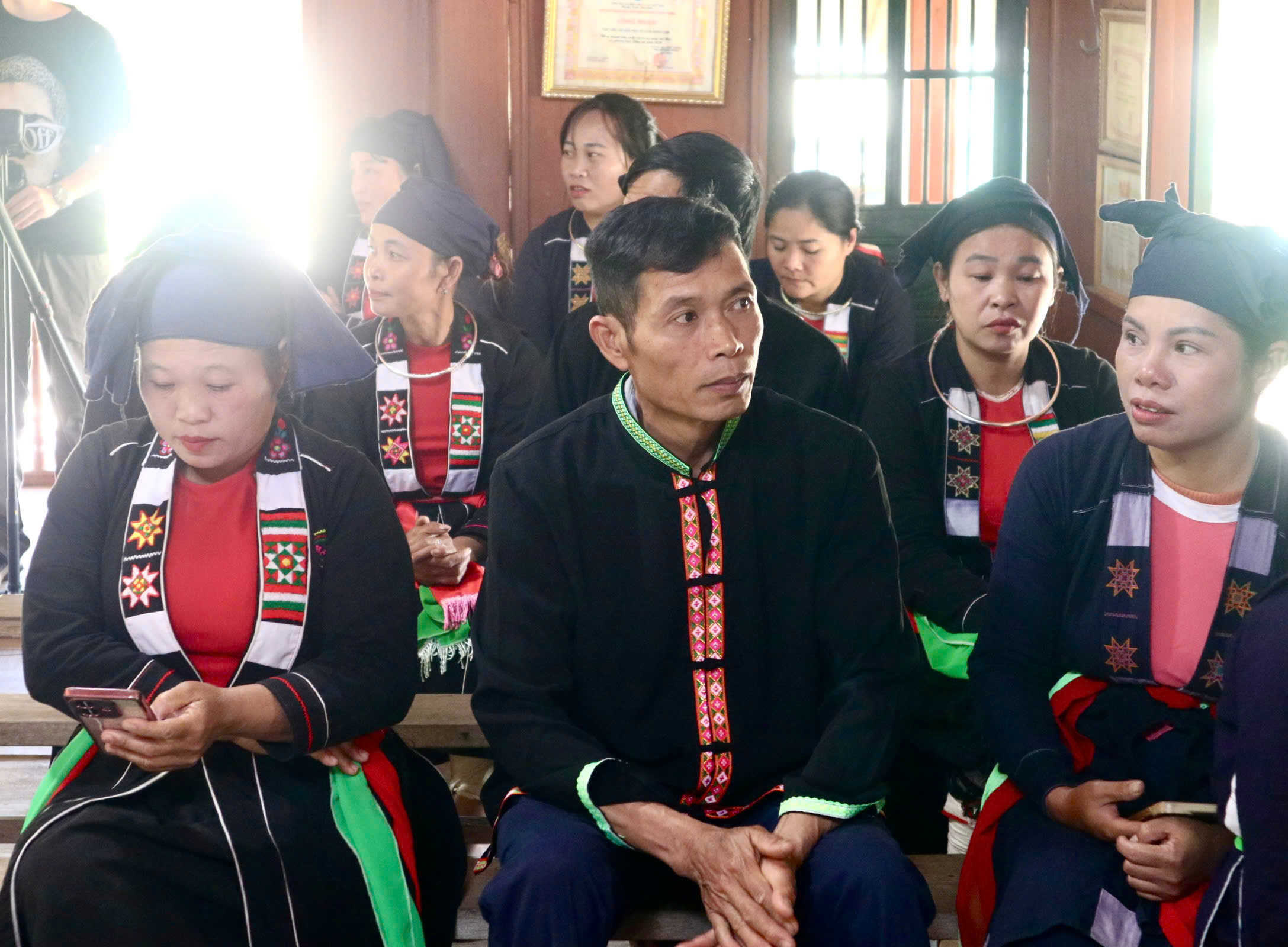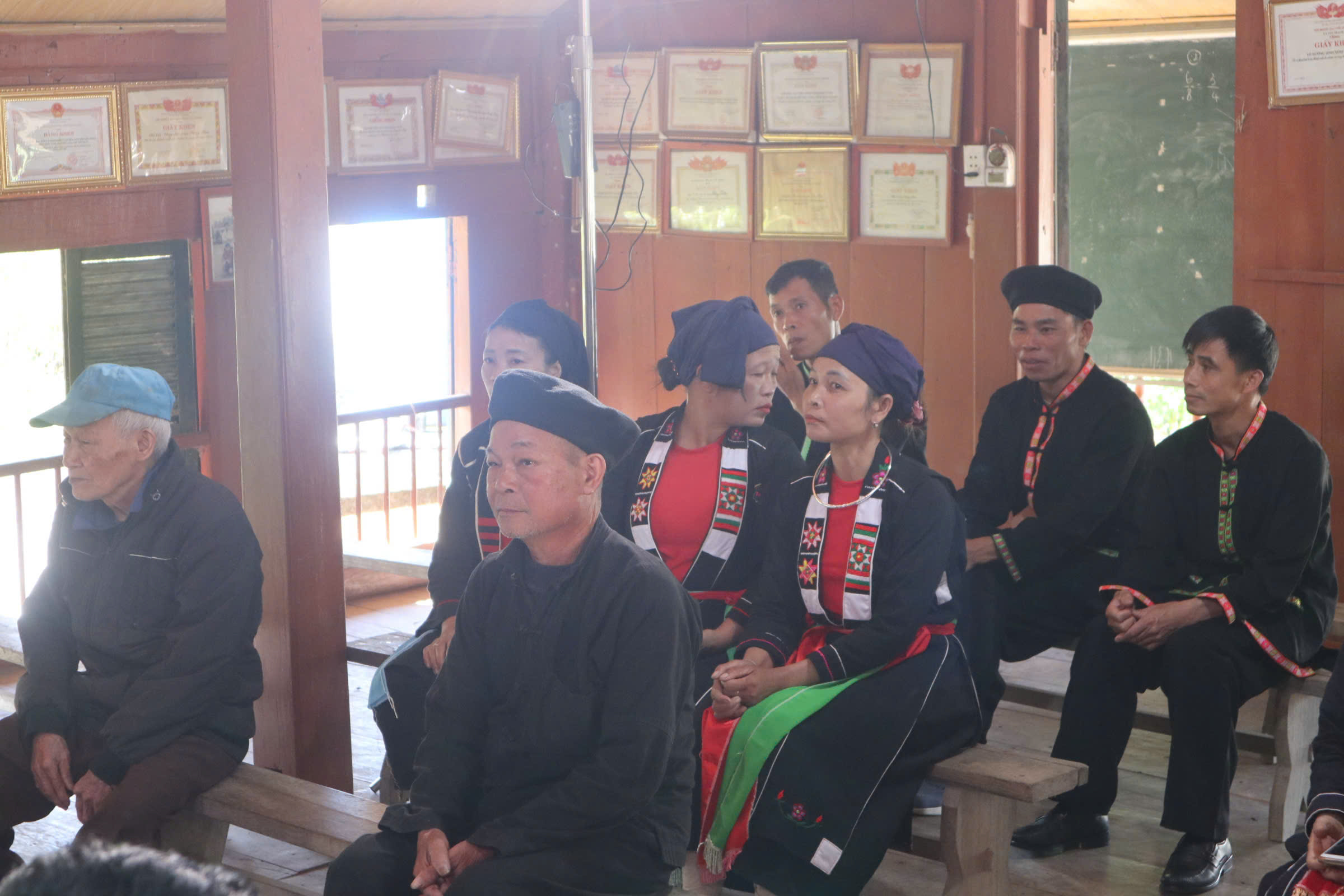 Tất cả người dân có mặt trong buổi tập huấn đều mặc trang phục truyền thống, tạo nên không gian sinh hoạt văn hóa giàu tính bản địa của dân tộc Sán Chay
