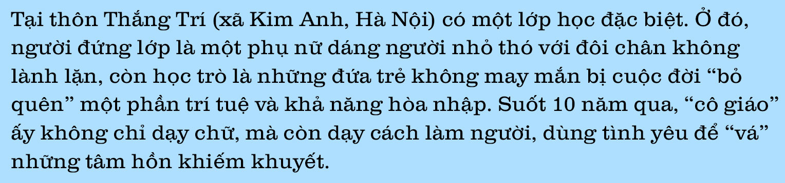 Ở lớp học của chị Sinh, không có bất cứ một giáo án chuẩn nào vì mỗi đứa trẻ đến đây đều là một "ca bệnh" khác nhau. Có em 7 tuổi nhưng không biết cầm bút, có bạn 15 tuổi vẫn chỉ biết vẽ những vòng tròn vô nghĩa. Hướng mắt về phía Việt, một cậu học trò 15 tuổi đến từ tỉnh Nình Bình, chị Sinh không giấu được những xúc cảm: