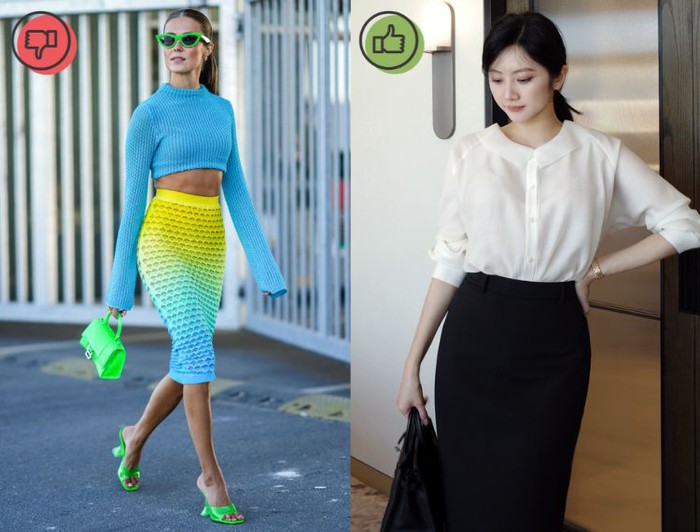 Màu sắc sặc sỡ như cam cháy hay xanh lá cây sáng có thể khiến họ trông thiếu nghiêm túc trong mắt đồng nghiệp hoặc khách hàng. Trong các buổi họp quan trọng hay sự kiện trang trọng như hội nghị, tiệc công ty, việc chọn màu sắc nổi bật có thể làm lu mờ thông điệp chuyên môn mà họ muốn truyền tải. Thay vào đó, họ có thể sử dụng phụ kiện màu sắc như khăn choàng, cà vạt hoặc túi xách để thêm điểm nhấn mà không quá phô trương.