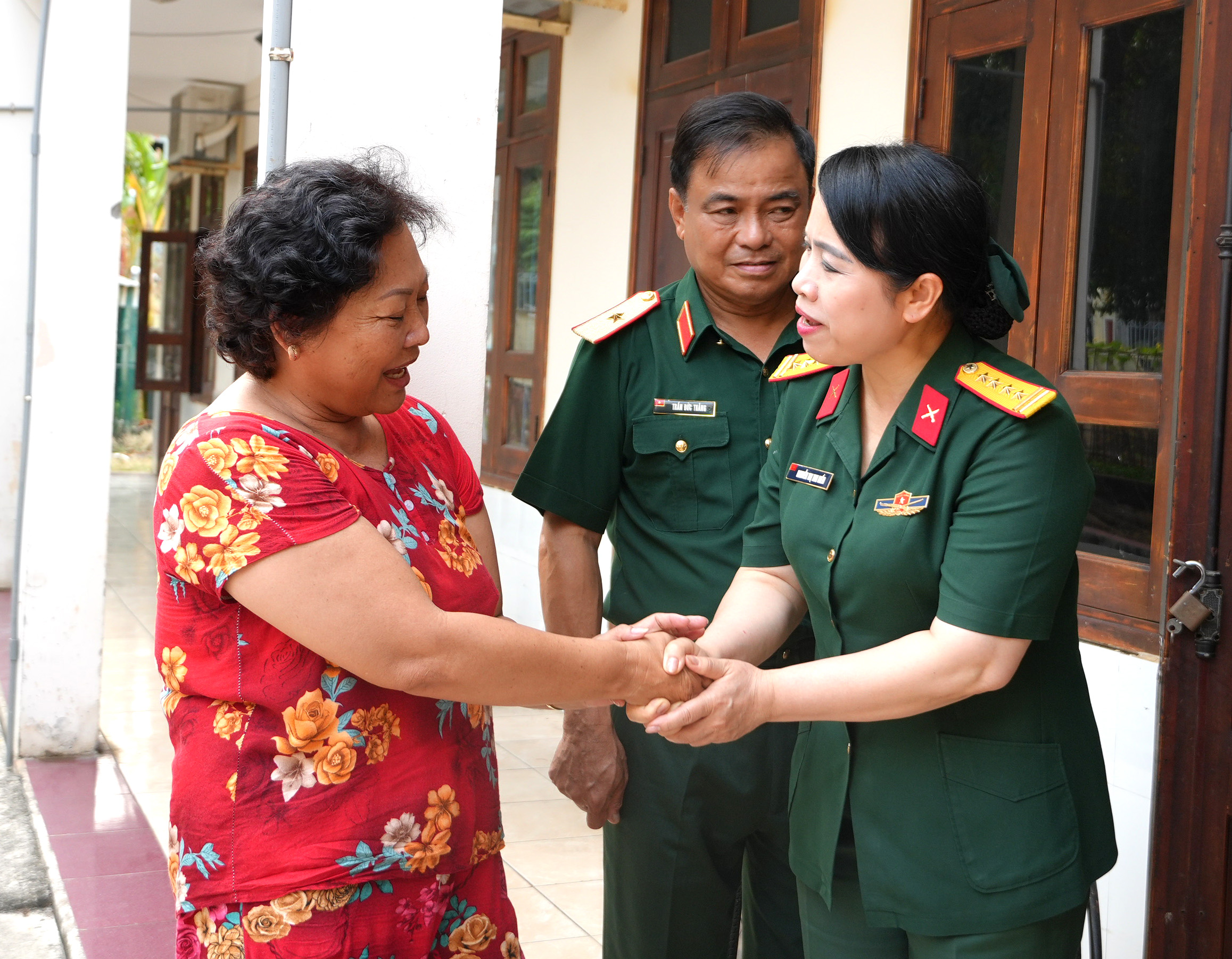 Thiếu tướng Trần Văn Nam, Phó Cục trưởng Cục Cán bộ, Ủy viên Ban VSTBCPN Bộ Quốc phòng (bìa phải); Đại tá Nguyễn Thị Thu Hiền, Trưởng Ban Phụ nữ Quân đội, Ủy viên thường trực VSTBCPN Bộ Quốc phòng (thứ 3 từ phải sang), cùng đoàn đến thăm gia đình các thương bệnh binh tại Trung tâm Điều dưỡng thương binh và người có công Long Đất, TPHCM.